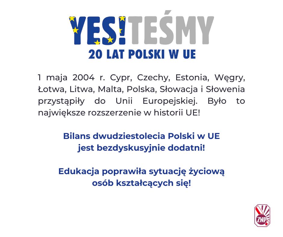 W 2024 roku obchodzimy 20. rocznicę przystąpienia Polski do UE. 1 maja 2004 r. Cypr, Czechy, Estonia, Węgry, Łotwa, Litwa, Malta, Polska, Słowacja i Słowenia przystąpiły do Unii Europejskiej. Było to największe rozszerzenie w historii UE!