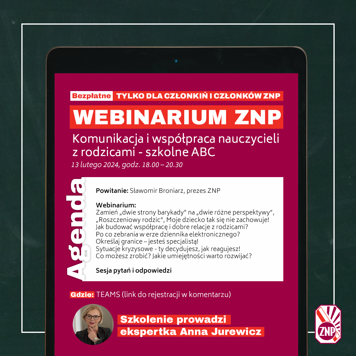 Bezpłatne webinarium ZNP – „Komunikacja i współpraca nauczycieli z rodzicami – szkolne ABC”