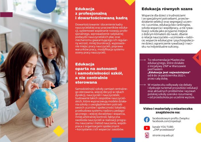 FOLDER “Edukacja jest najważniejsza” – plik do druku posiadają Okręgi ZNP.