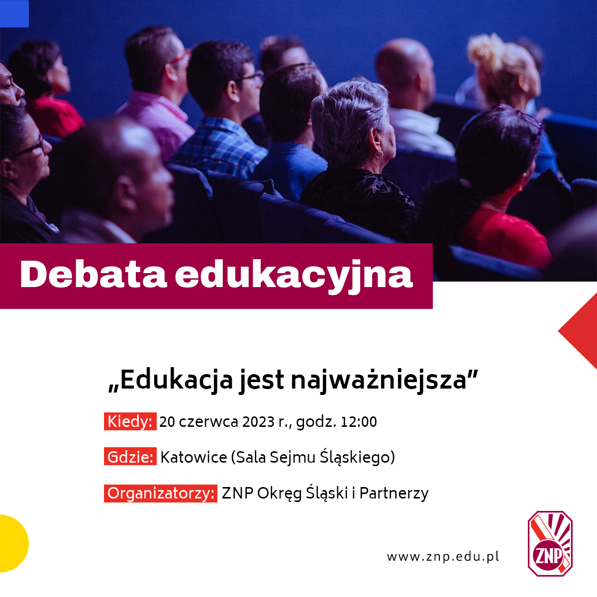 20 czerwca 2023 roku w Katowicach odbędzie się debata edukacyjna „Edukacja jest najważniejsza” (Sala Sejmu Śląskiego, ul. Ligonia 46).
