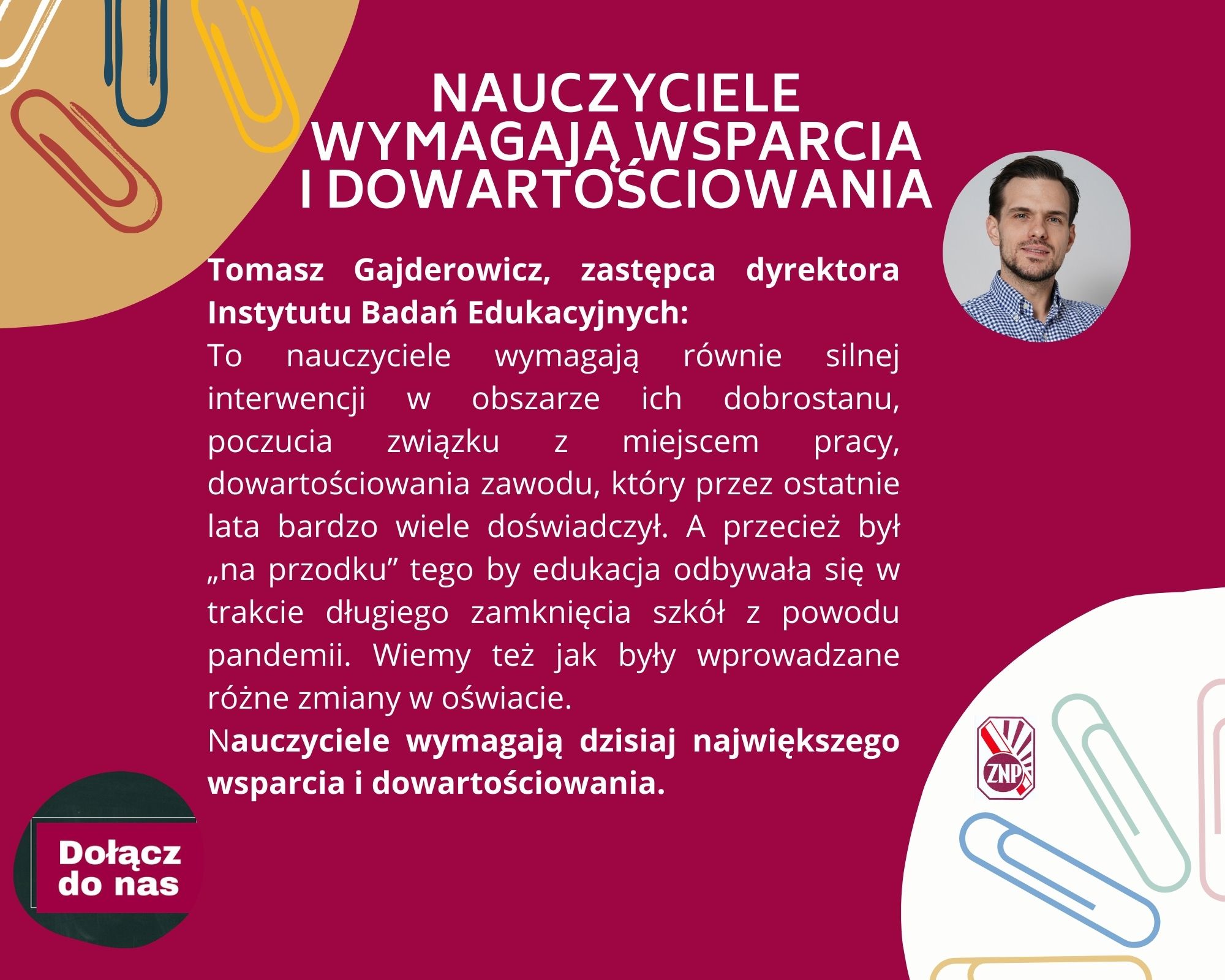 – Dobrostan uczniów jest bardzo, bardzo nisko, ale można być jeszcze niżej, jeśli chodzi o to, co się wydarzyło w ostatnich latach z tymi, którzy w największym stopniu są blisko uczniów, z tymi, o których w takiej dyskusji jak dzisiaj, mówi się zdecydowanie za mało – z nauczycielami – zaznaczył.