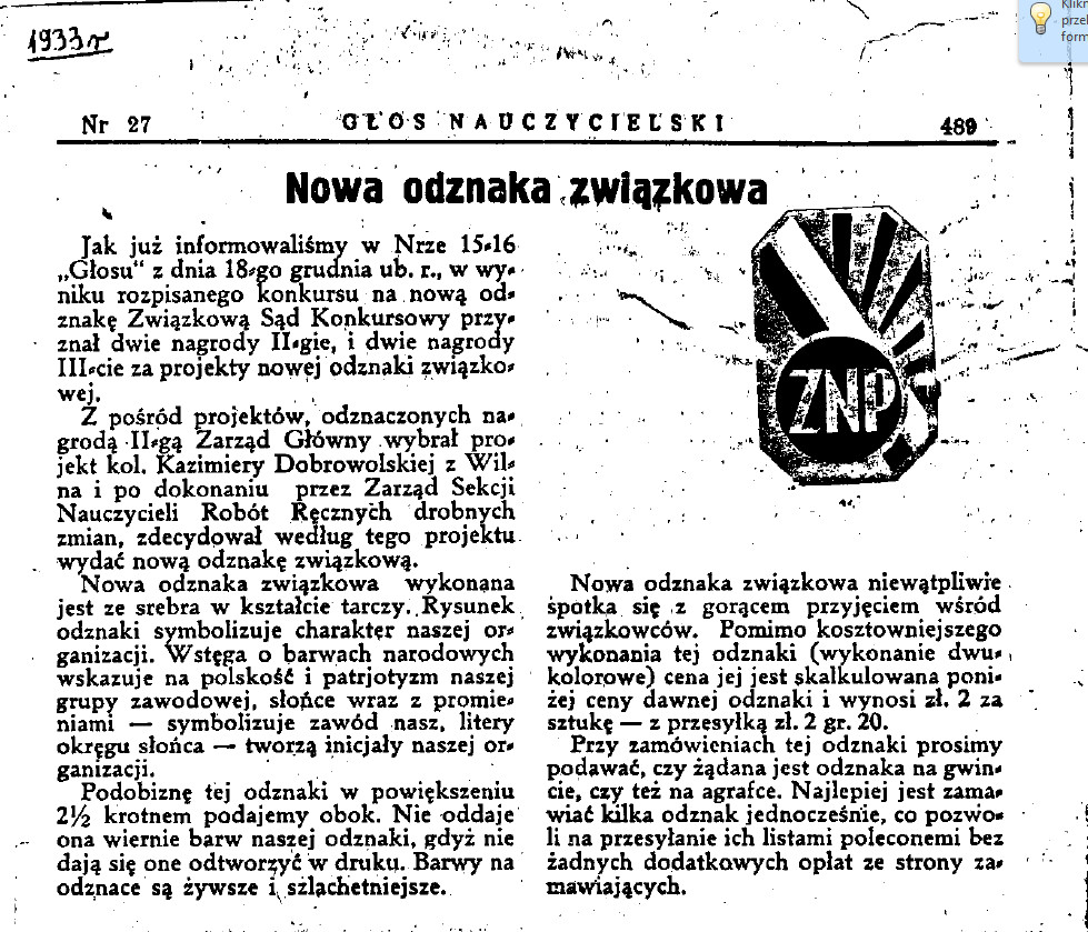 Poniżej zamieszczamy informację opublikowaną w Głosie Nauczycielskim w 1933 roku dotyczącą naszego związkowego logotypu oraz wersje logo do ściągnięcia na dysk w formie plików w różnych formatach.