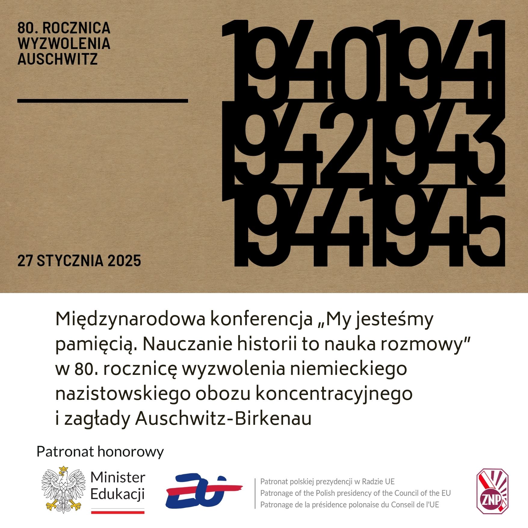 „My jesteśmy pamięcią. Nauczanie historii to nauka rozmowy” to tytuł tegorocznej międzynarodowej konferencji współorganizowanej przez #ZNP, która odbędzie się 27 – 28 stycznia 2025 r. (Kraków, Muzeum Auschwitz) pod patronatem: