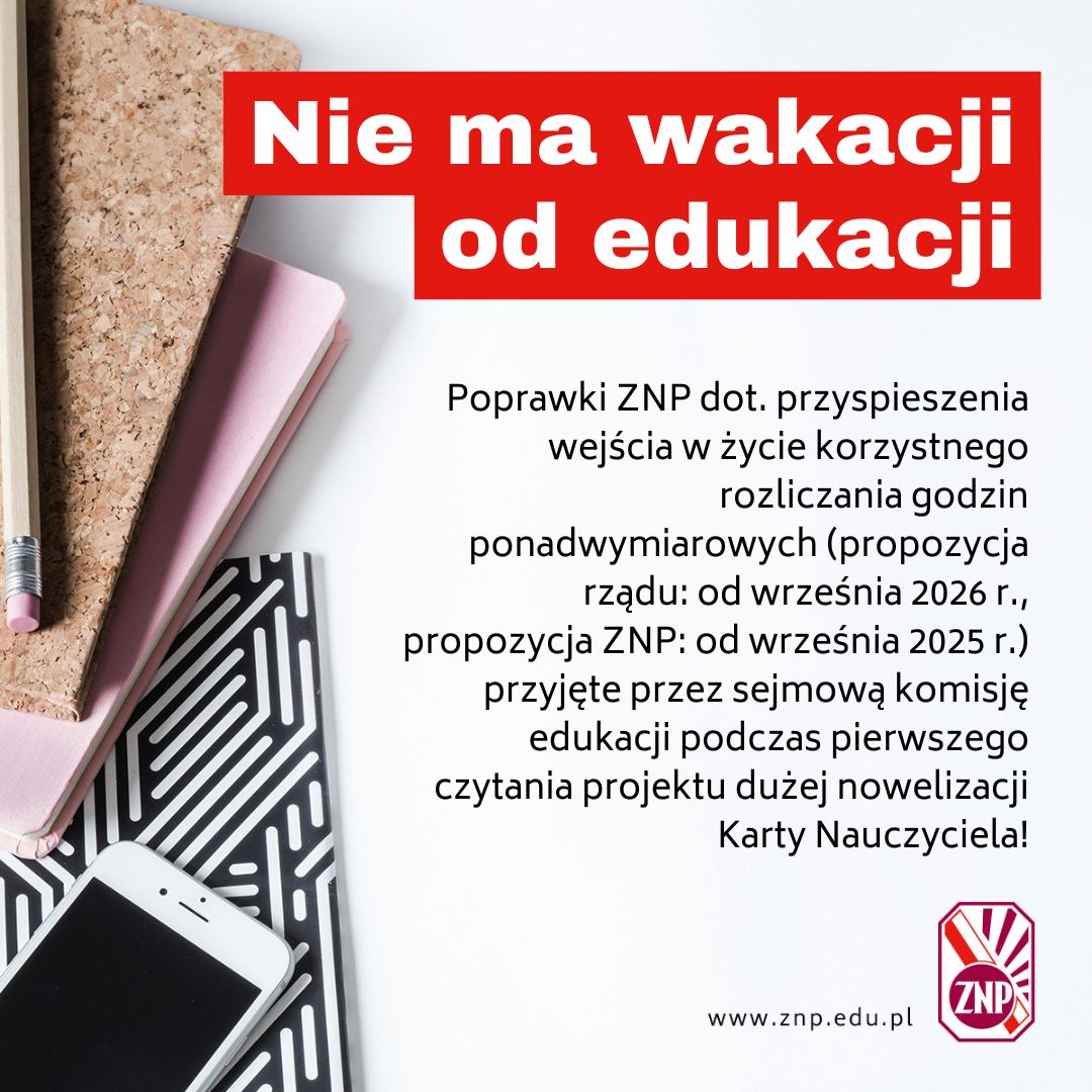 10 lipca sejmowa komisja edukacji – podczas pierwszego czytania rządowego projektu dużej nowelizacji Karty Nauczyciela – przyjęła poprawki zaproponowane przez ZNP dot. przyspieszenia wejścia w życie korzystnego rozliczania godzin ponadwymiarowych (propozycja rządu: od września 2026 r., propozycja ZNP: od września 2025 r.).