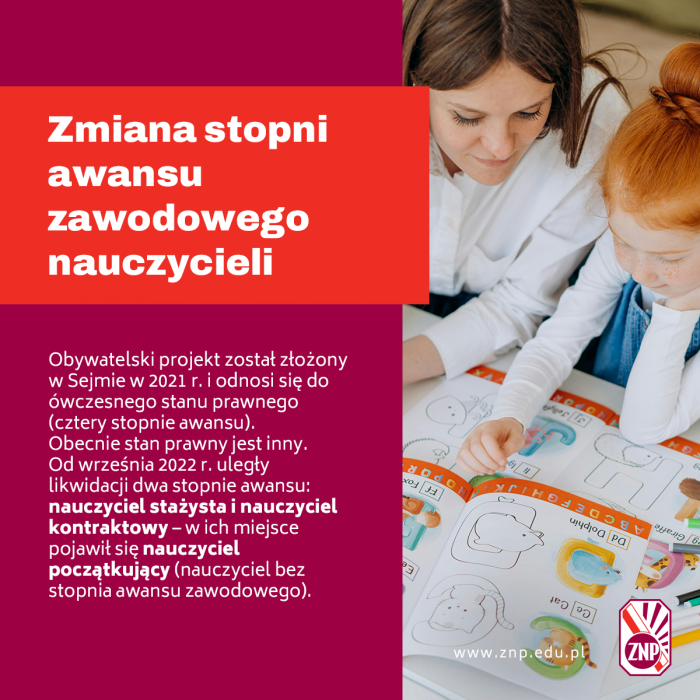 - rząd Zjednoczonej Prawicy zmodyfikował stopnie awansu zawodowego (były cztery, są dwa).