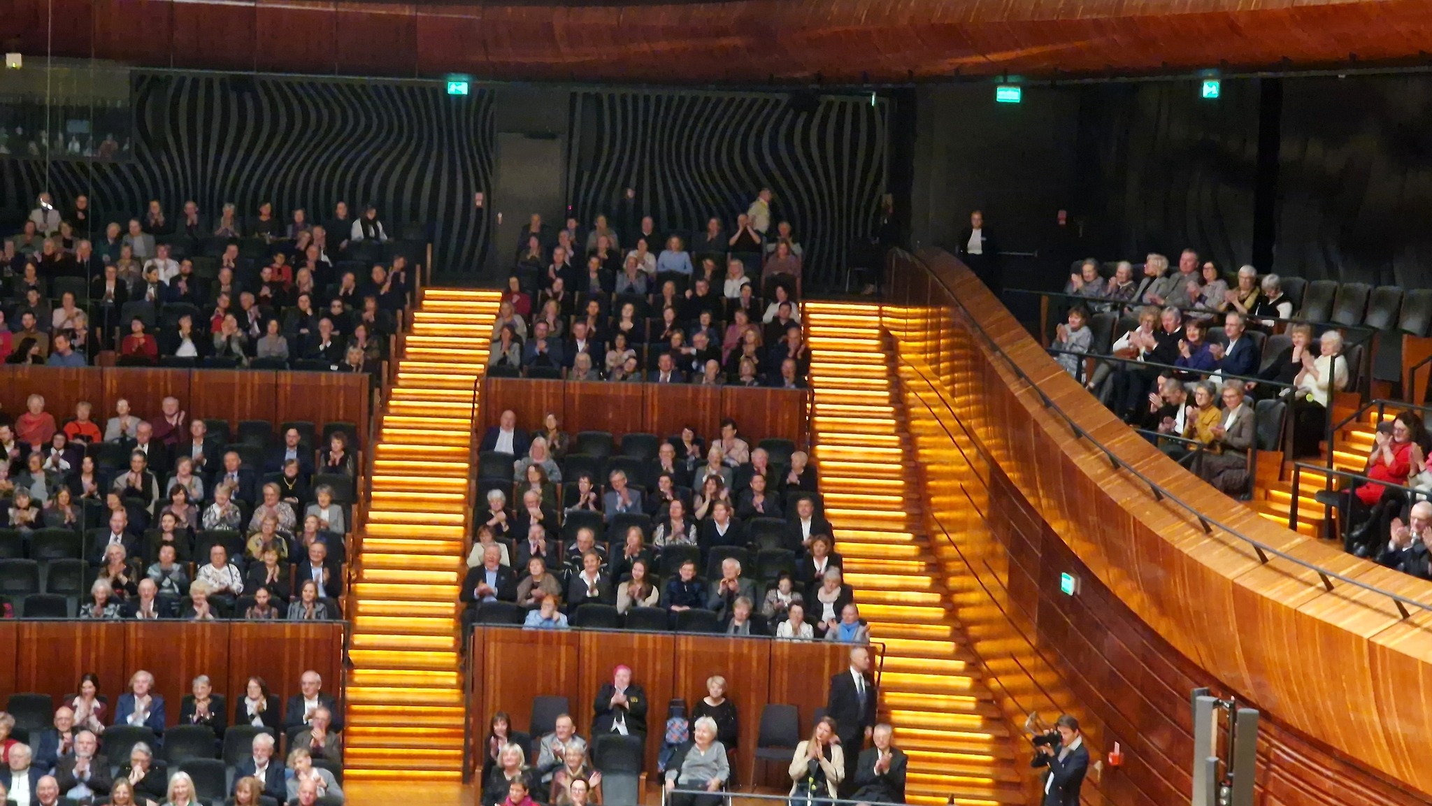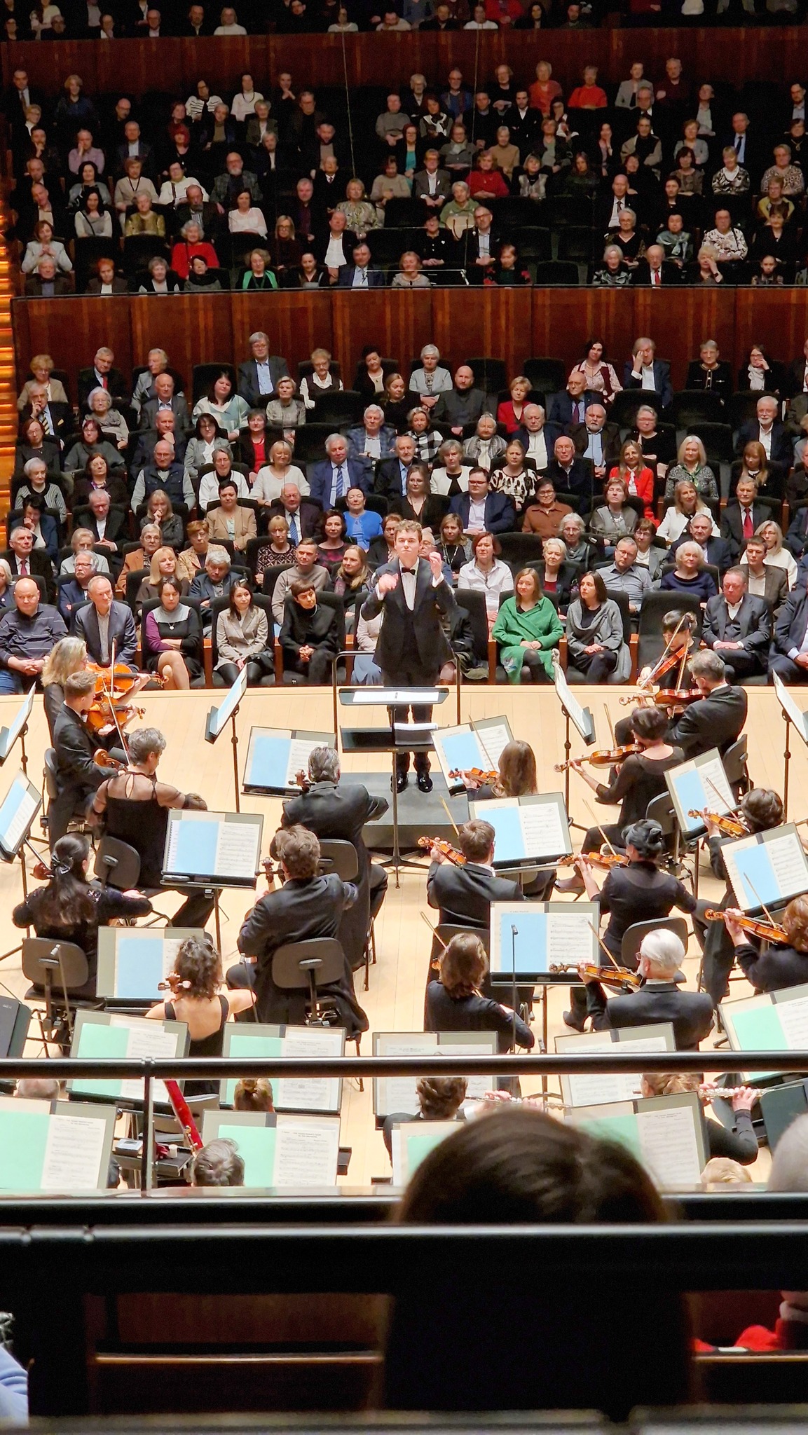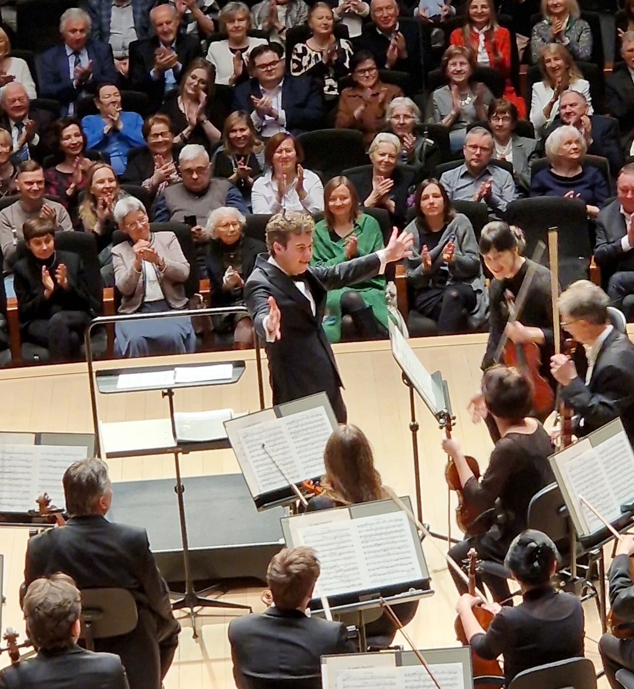 W minioną niedzielę, słoneczną, ale bardzo mroźną, już o godz. 10.00 wyruszyliśmy autokarem z Rybnika do Katowic na Poranek symfoniczny Narodowej Orkiestry Symfonicznej Polskiego Radia z siedzibą w Katowicach. To jedna z najważniejszych orkiestr symfonicznych w Polsce, a jej koncerty w wyjątkowej Sali widowiskowej na 1800 miejsc, o wspaniałej akustyce są dla melomanów wspaniałym przeżyciem. Widownia otacza scenę ze wszystkich stron, ogromna sala urzeka wręcz kameralnością. Bardzo lubimy koncerty NOSPR i bywamy tam dość często dzięki operatywności naszej koleżanki Ani P., która zawsze przygotuje odbiorców i podaje w autokarze niezbędne informacje o treści koncertu. Nie inaczej było i tym razem. Dyrygentem orkiestry był młody, utalentowany Angus Webster Anglik, którego w słowie wstępnym przed spektaklem zapowiedział Piotr Matwiejczuk. Dyrygent zachwycił nas swą elegancją, energią i wdziękiem oraz swoistą radością młodego człowieka z wykonywanej przez siebie pracy.