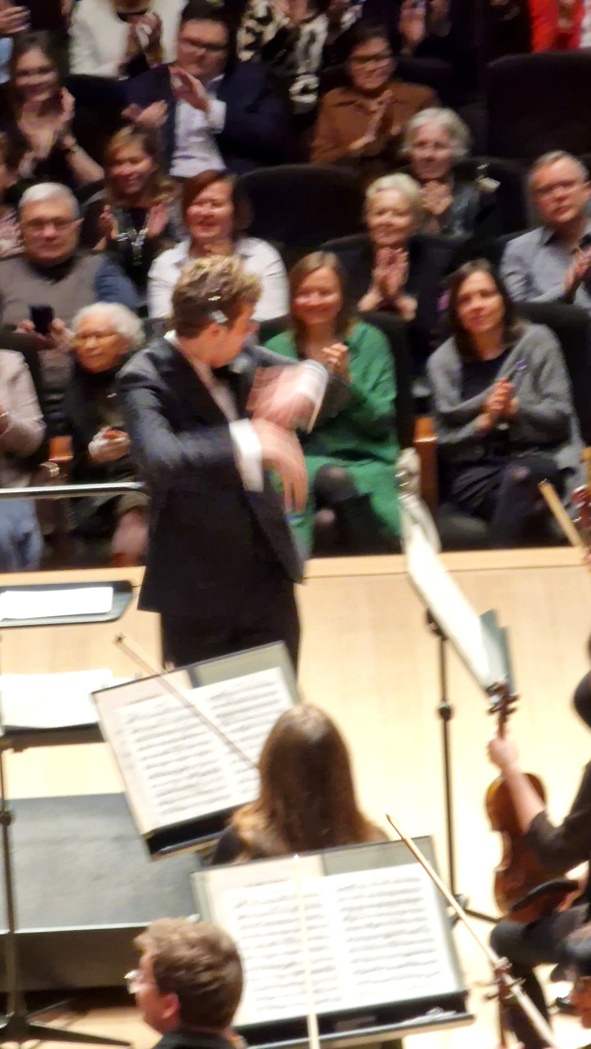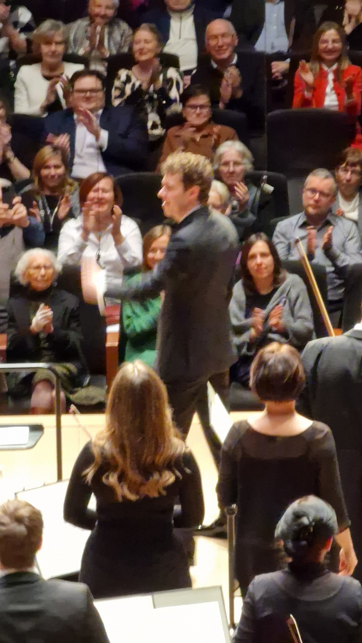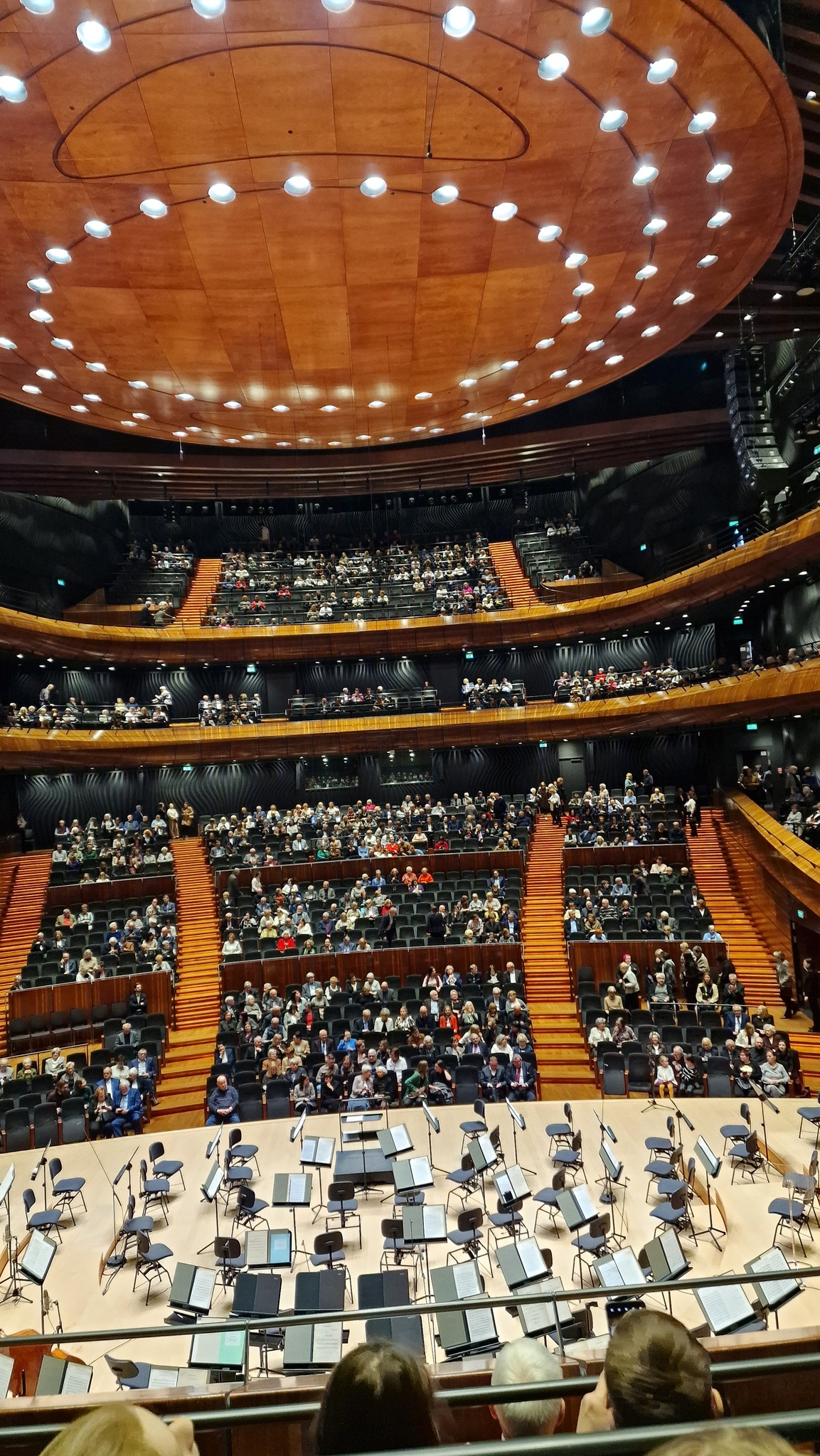W minioną niedzielę, słoneczną, ale bardzo mroźną, już o godz. 10.00 wyruszyliśmy autokarem z Rybnika do Katowic na Poranek symfoniczny Narodowej Orkiestry Symfonicznej Polskiego Radia z siedzibą w Katowicach. To jedna z najważniejszych orkiestr symfonicznych w Polsce, a jej koncerty w wyjątkowej Sali widowiskowej na 1800 miejsc, o wspaniałej akustyce są dla melomanów wspaniałym przeżyciem. Widownia otacza scenę ze wszystkich stron, ogromna sala urzeka wręcz kameralnością. Bardzo lubimy koncerty NOSPR i bywamy tam dość często dzięki operatywności naszej koleżanki Ani P., która zawsze przygotuje odbiorców i podaje w autokarze niezbędne informacje o treści koncertu. Nie inaczej było i tym razem. Dyrygentem orkiestry był młody, utalentowany Angus Webster Anglik, którego w słowie wstępnym przed spektaklem zapowiedział Piotr Matwiejczuk. Dyrygent zachwycił nas swą elegancją, energią i wdziękiem oraz swoistą radością młodego człowieka z wykonywanej przez siebie pracy.