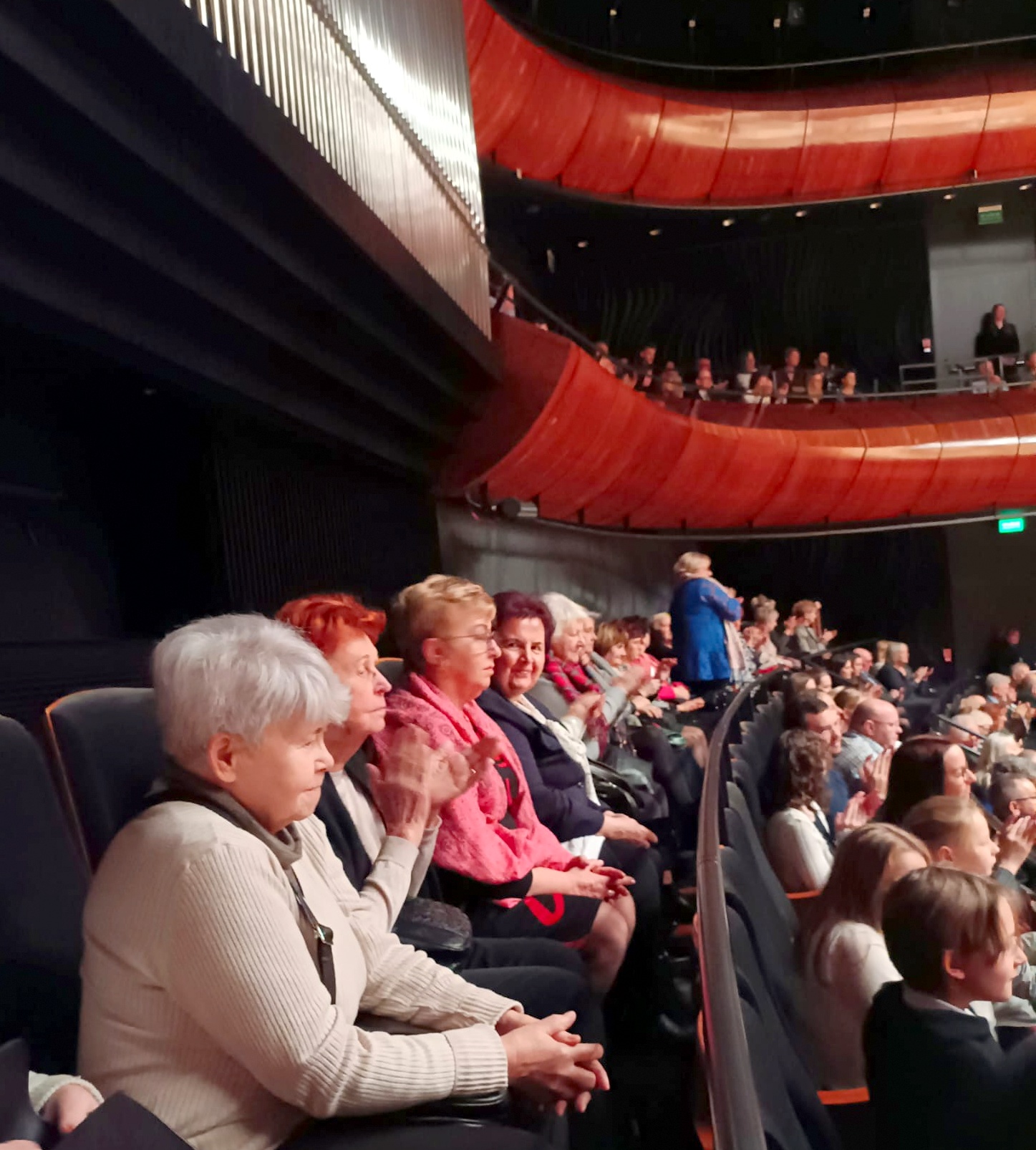 Tu nastąpiła prezentacja widzom całego składu orkiestry symfonicznej z pokazem i nazwą poszczególnych instrumentów, ich dźwięku oraz ich liczby w składzie orkiestry. Gromkie brawa, owacje na stojąco były dowodem na to, spektakl bardzo się podobał. Dziękujemy Ani, panu Markowi – naszemu kierowcy autokaru oraz wszystkim uczestnikom, za mile spędzony czas.