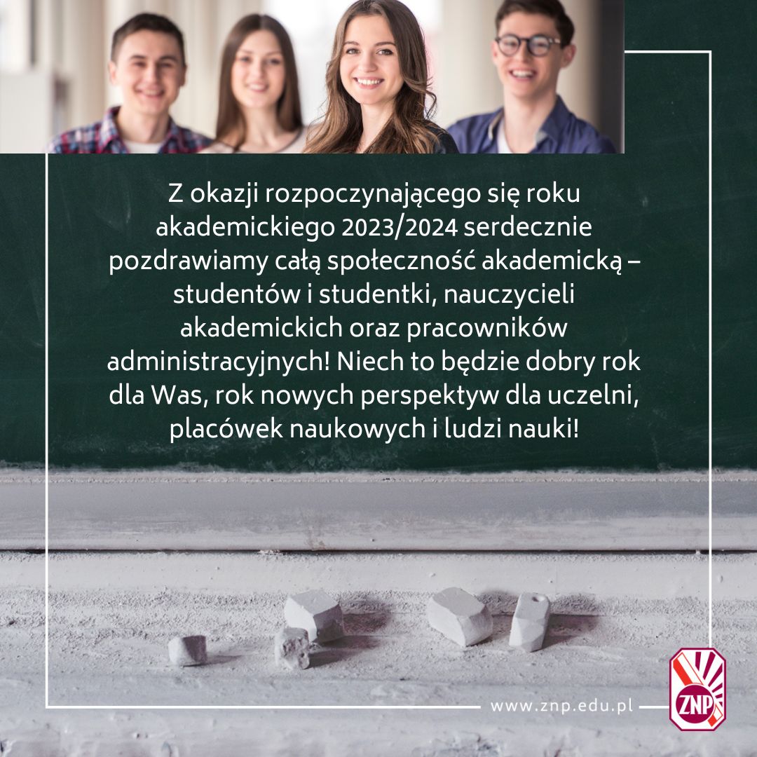Z okazji rozpoczynającego się roku akademickiego 2023/2024 serdecznie pozdrawiamy całą społeczność akademicką – studentów i studentki, nauczycieli akademickich oraz pracowników administracyjnych!
