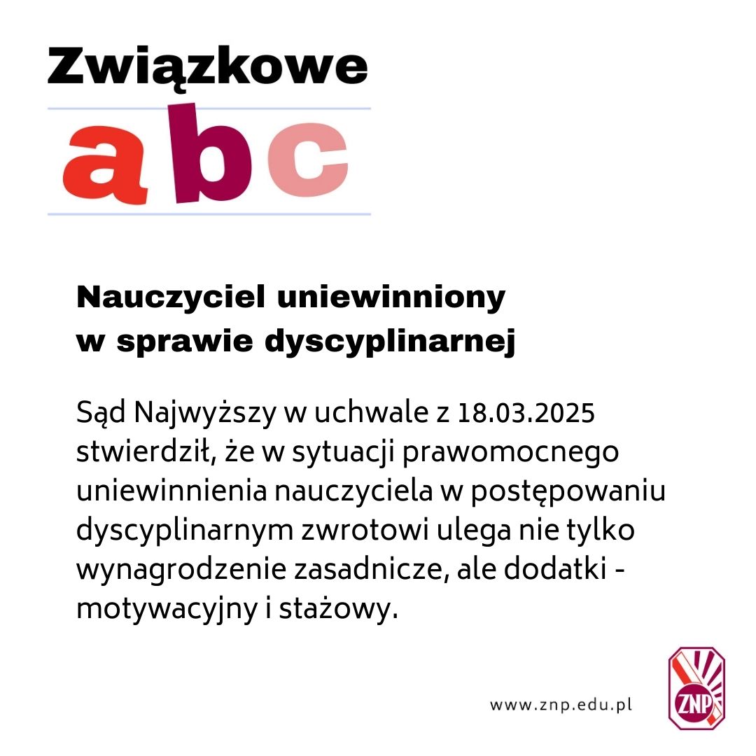 Sąd Najwyższy w uchwale z 18 marca 2025 r. (III PZP 5/24) stwierdził, że w sytuacji prawomocnego uniewinnienia nauczyciela w postępowaniu dyscyplinarnym zwrotowi ulega nie tylko wynagrodzenie zasadnicze, ale i dodatek motywacyjny i dodatek stażowy, do których nauczyciel nabył prawo przed zawieszeniem w pełnieniu obowiązków służbowych.