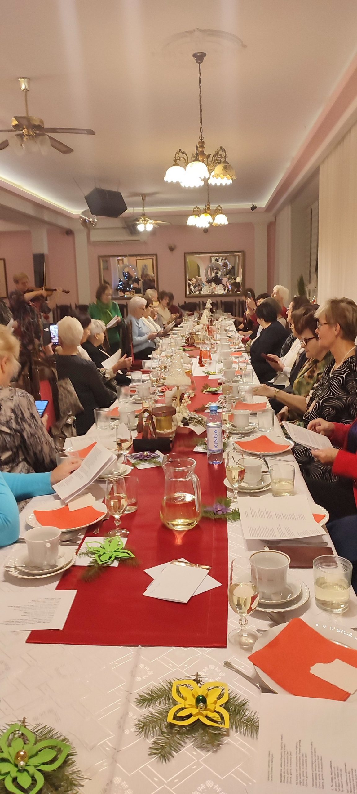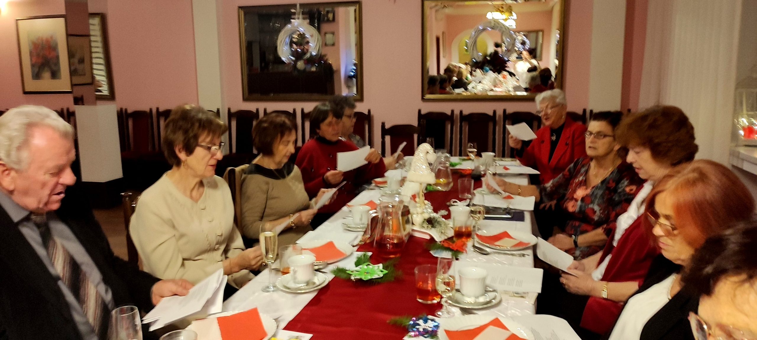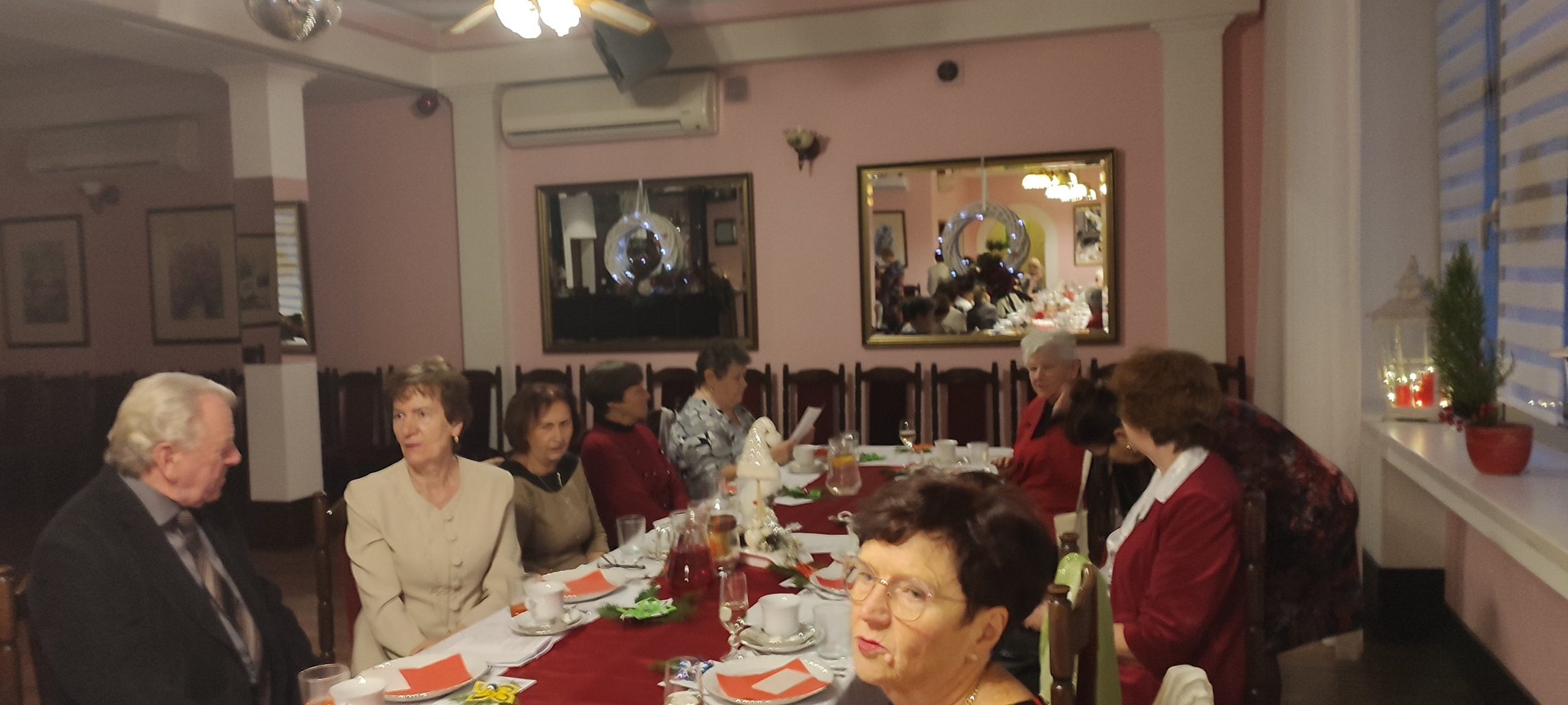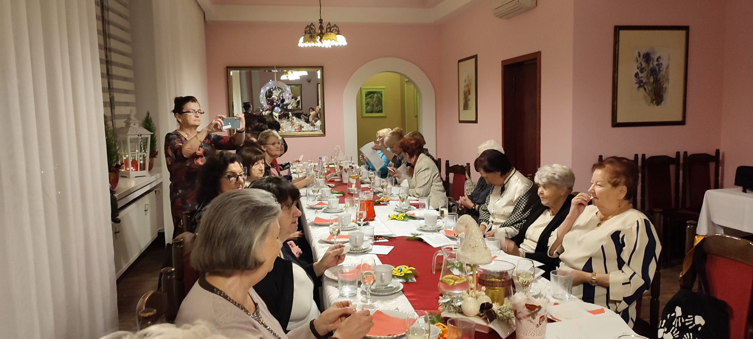 Jest taki wyjątkowy wieczór, na który każdy z nas czeka – to wieczór wigilijny, gdy wszyscy gromadzimy się rodzinnie przy wspólnym stole, by dzielić się białym opłatkiem i składać sobie życzenia. Sekcja Emerytów ZNP stanowi naszą sentymentalną związkową rodzinę, więc w dniu 13 grudnia br., dla chętnych członków Sekcji, odbyło się spotkanie wigilijne w Restauracji „Magnolia” w Rybniku. Wspólnie zaśpiewana kolęda „Jest taki dzień…”, z akompaniamentem skrzypiec, stworzyła prawdziwie świąteczny nastrój. Niestety, kilka osób zapisanych na „wigilijkę” nie mogło przybyć z powodu ponownego zachorowania na „Covid”. Z tego też powodu, po powitaniu zebranych i złożeniu życzeń przez przewodniczącą Sekcji, na jej prośbę, tym razem nie było wzajemnego łamania się opłatkiem, ani bezpośrednich gestów życzliwości i czułości. Każdy miał swój opłatek wraz z życzeniami świątecznymi w kopercie – dzieliliśmy się tylko dobrym słowem trzymając w ręku opłatek. Symboliczny toast lampką wina był zwieńczeniem naszych życzeń. Magiczna moc tego wieczoru zawsze przynosi spokój, radość i pokój, bo gasną wszelkie spory, bo rodzinna atmosfera łączy nas jeszcze mocniej. Nasz zespół muzyczno-kabaretowy pod kier. kol. Julii Rzytki oraz naszej Maestry – kol. Renaty Mielimąki, przygotował wszystkim teksty do wspólnego kolędowania, a sam opowiedział w gwarze śląskiej o dawnej śląskiej Wigilii. Nie zabrakło również bożonarodzeniowej poezji. Przygotowane przez restaurację dania wigilijne: barszcz czerwony z uszkami, ryba smażona, kapusta z grzybami, ziemniaki oraz kawa i ciasto z serem i makiem, wszystkim bardzo smakowały, a wykonaną przez naszą kol. Janinę Nowakowską ciekawą dekorację talerza, każdy zabrał ze sobą do domu. Dziękuję kol. Joli Kornas, która pomagała mi w kontaktach z kierownictwem restauracji. Dziękuję wszystkim, którzy pomagali w przygotowaniu spotkania oraz tym którzy przybyli, by spędzić ten przedświąteczny wieczór razem z nami. To był czas pełen ciepła i wzajemnej życzliwości, czas niezapomnianych chwil z przyjaciółmi.