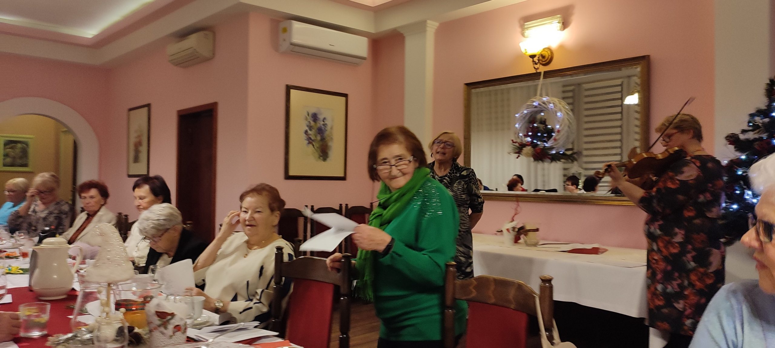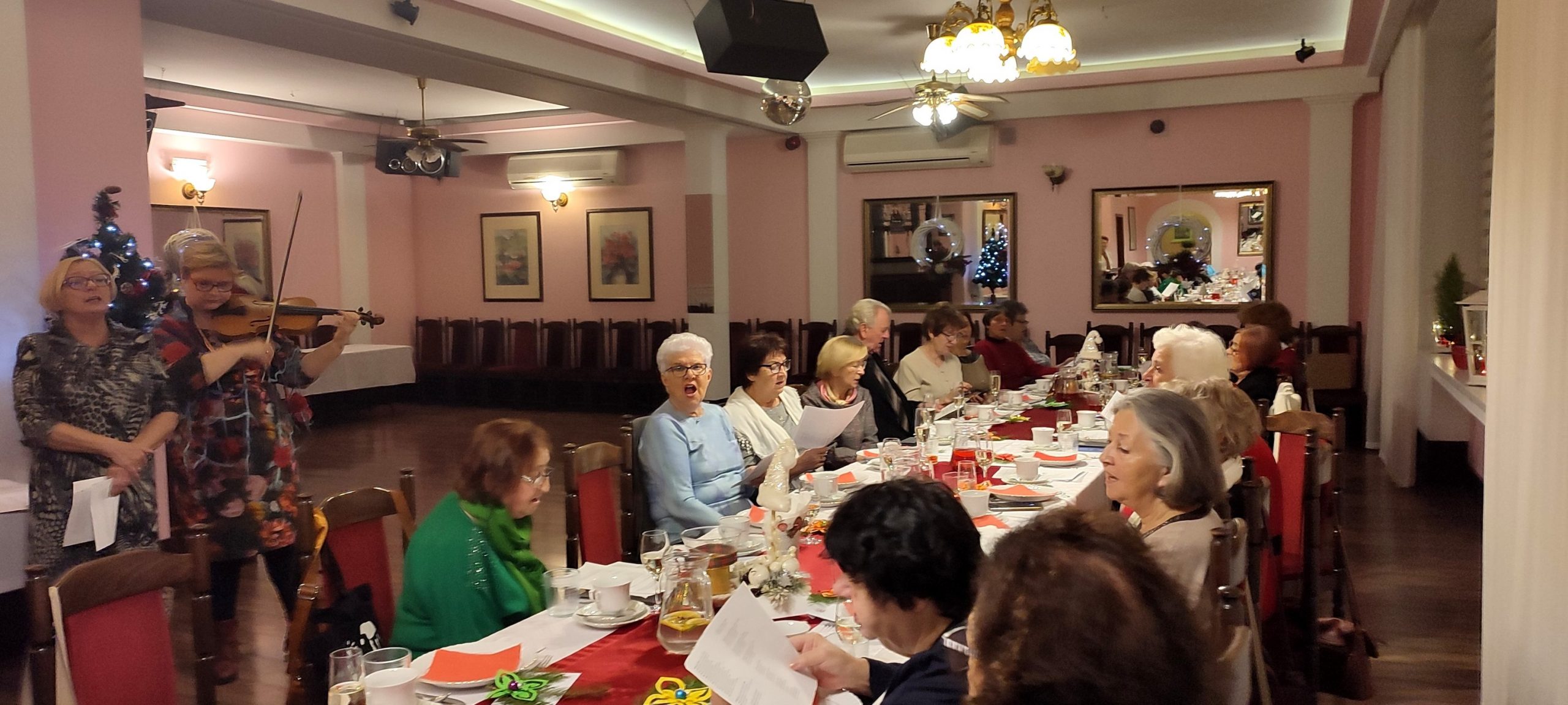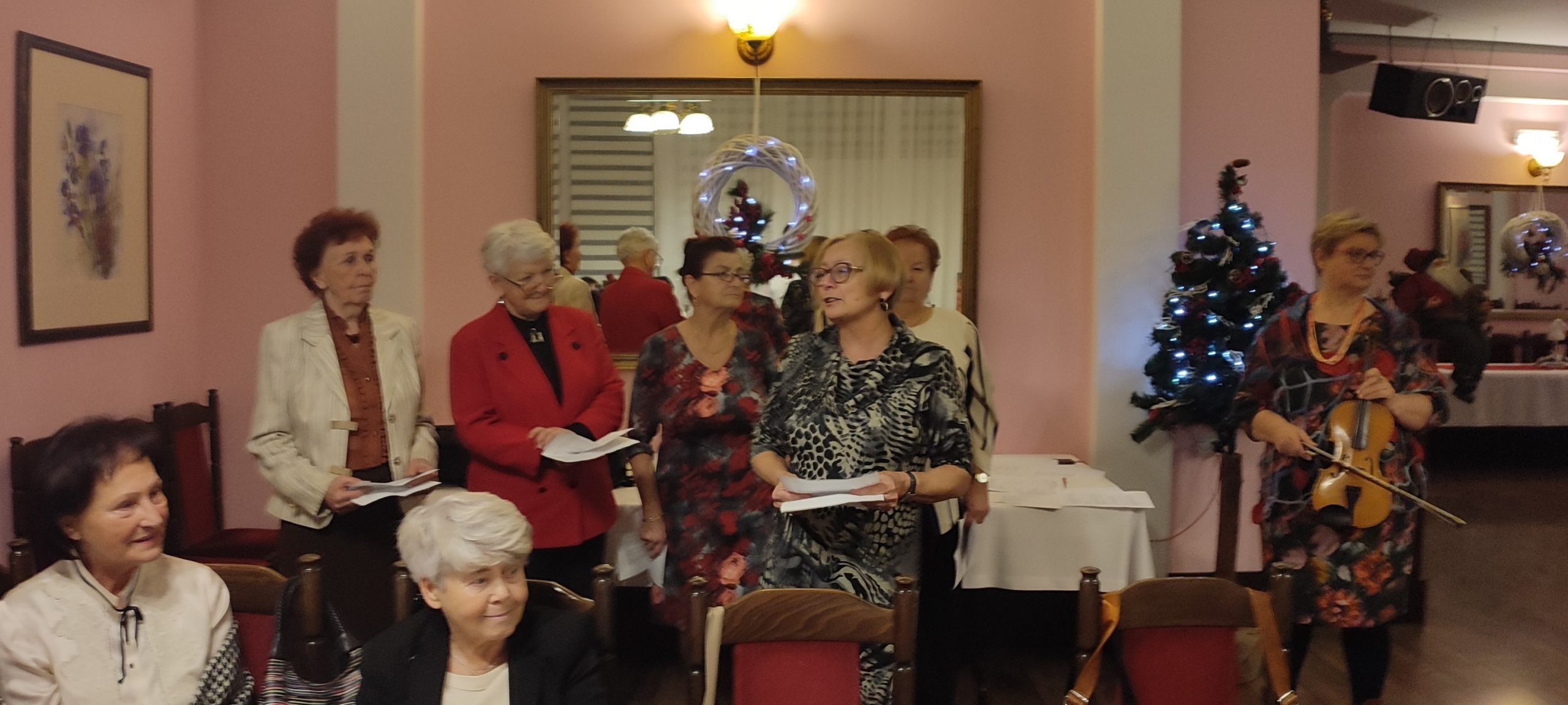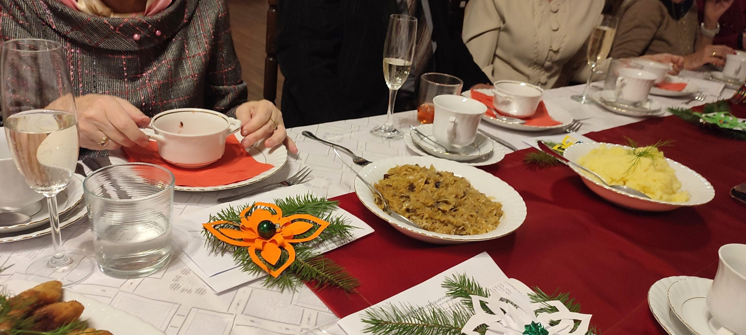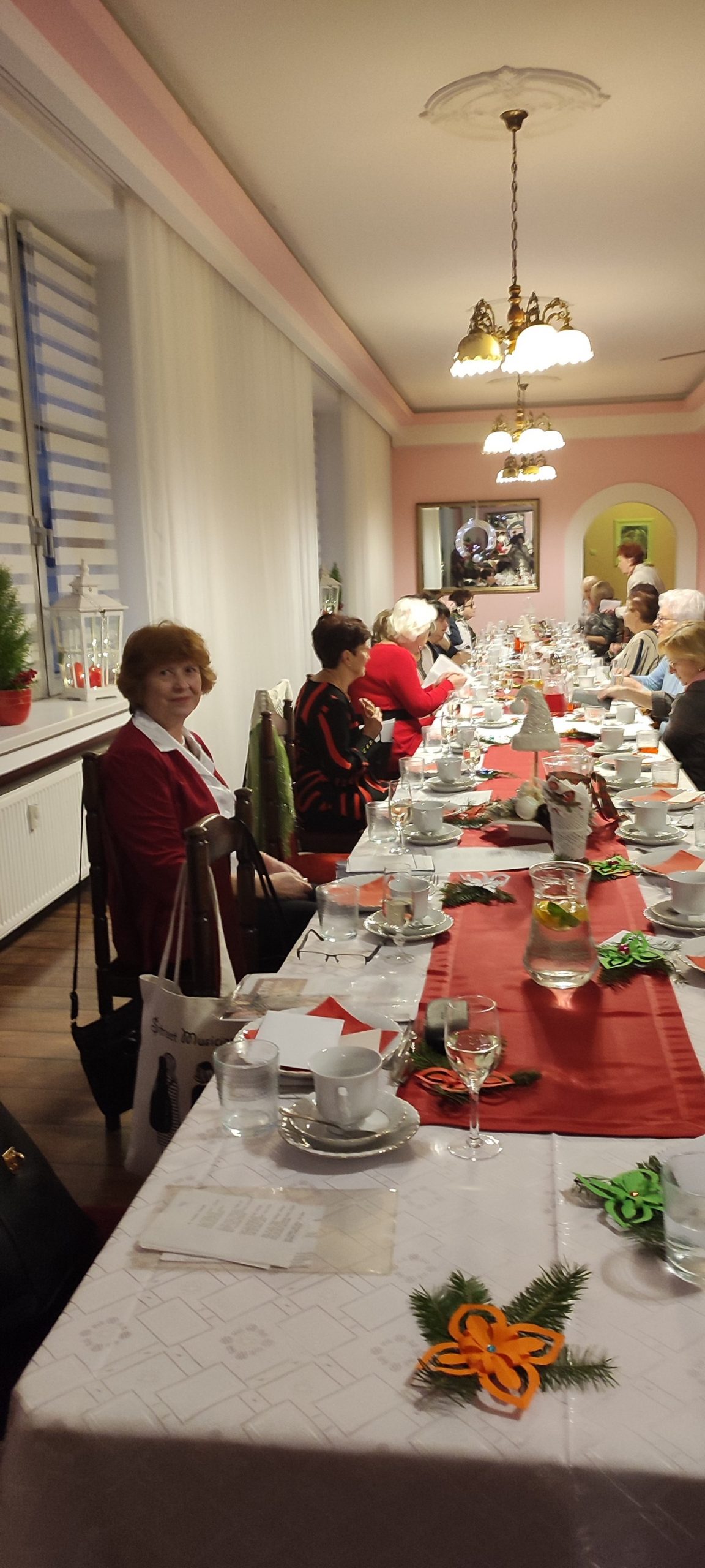 Jest taki wyjątkowy wieczór, na który każdy z nas czeka – to wieczór wigilijny, gdy wszyscy gromadzimy się rodzinnie przy wspólnym stole, by dzielić się białym opłatkiem i składać sobie życzenia. Sekcja Emerytów ZNP stanowi naszą sentymentalną związkową rodzinę, więc w dniu 13 grudnia br., dla chętnych członków Sekcji, odbyło się spotkanie wigilijne w Restauracji „Magnolia” w Rybniku. Wspólnie zaśpiewana kolęda „Jest taki dzień…”, z akompaniamentem skrzypiec, stworzyła prawdziwie świąteczny nastrój. Niestety, kilka osób zapisanych na „wigilijkę” nie mogło przybyć z powodu ponownego zachorowania na „Covid”. Z tego też powodu, po powitaniu zebranych i złożeniu życzeń przez przewodniczącą Sekcji, na jej prośbę, tym razem nie było wzajemnego łamania się opłatkiem, ani bezpośrednich gestów życzliwości i czułości. Każdy miał swój opłatek wraz z życzeniami świątecznymi w kopercie – dzieliliśmy się tylko dobrym słowem trzymając w ręku opłatek. Symboliczny toast lampką wina był zwieńczeniem naszych życzeń. Magiczna moc tego wieczoru zawsze przynosi spokój, radość i pokój, bo gasną wszelkie spory, bo rodzinna atmosfera łączy nas jeszcze mocniej. Nasz zespół muzyczno-kabaretowy pod kier. kol. Julii Rzytki oraz naszej Maestry – kol. Renaty Mielimąki, przygotował wszystkim teksty do wspólnego kolędowania, a sam opowiedział w gwarze śląskiej o dawnej śląskiej Wigilii. Nie zabrakło również bożonarodzeniowej poezji. Przygotowane przez restaurację dania wigilijne: barszcz czerwony z uszkami, ryba smażona, kapusta z grzybami, ziemniaki oraz kawa i ciasto z serem i makiem, wszystkim bardzo smakowały, a wykonaną przez naszą kol. Janinę Nowakowską ciekawą dekorację talerza, każdy zabrał ze sobą do domu. Dziękuję kol. Joli Kornas, która pomagała mi w kontaktach z kierownictwem restauracji. Dziękuję wszystkim, którzy pomagali w przygotowaniu spotkania oraz tym którzy przybyli, by spędzić ten przedświąteczny wieczór razem z nami. To był czas pełen ciepła i wzajemnej życzliwości, czas niezapomnianych chwil z przyjaciółmi.