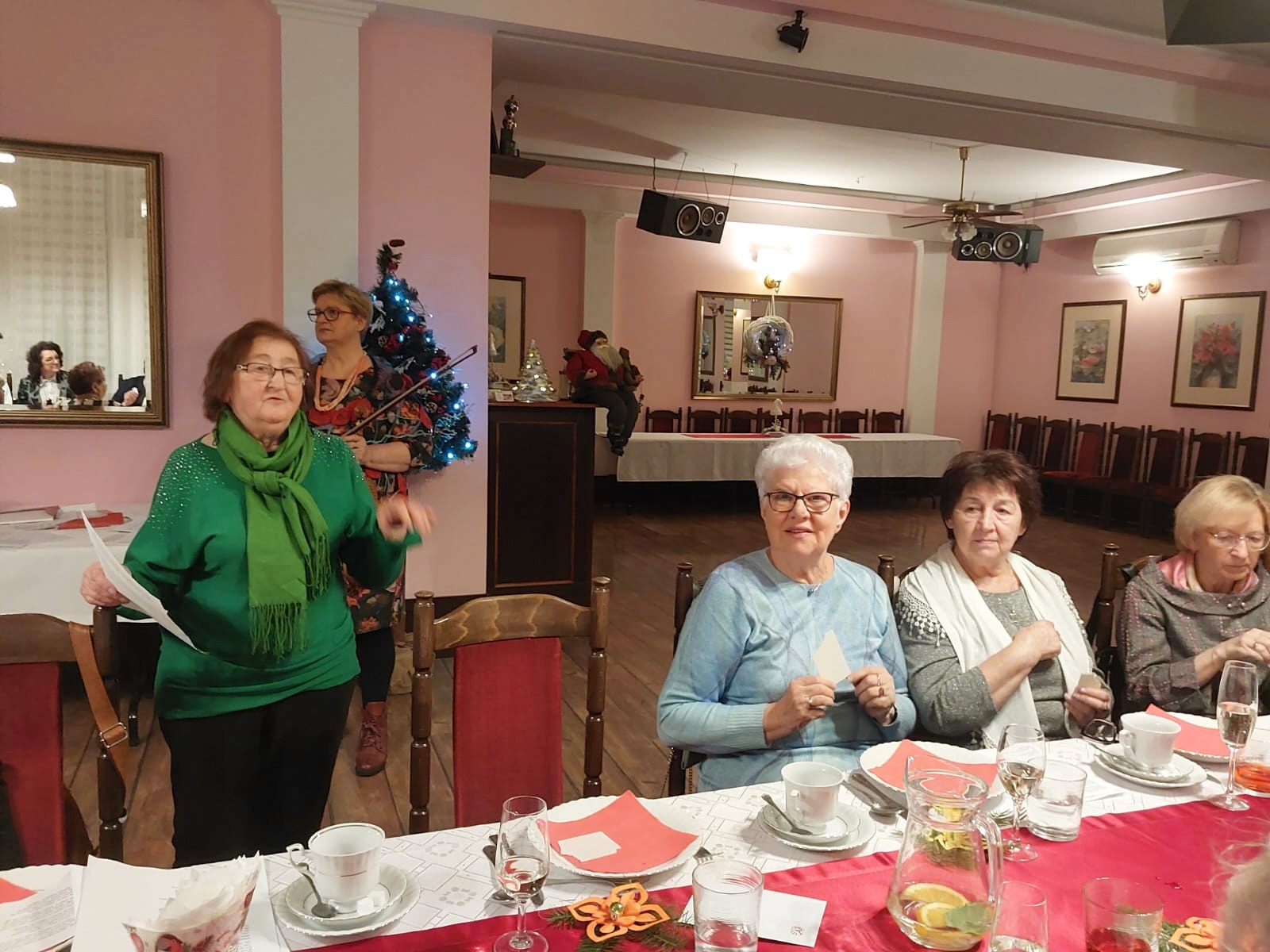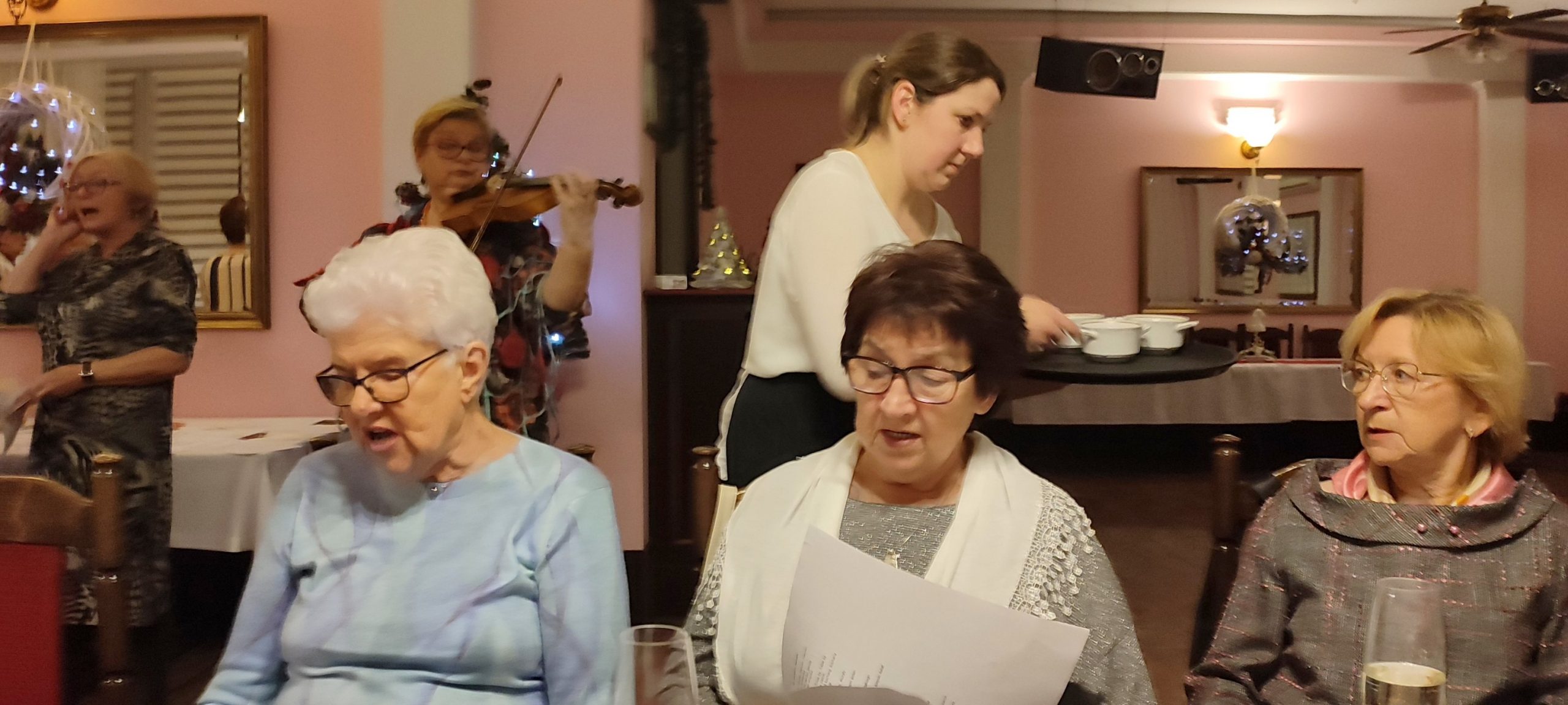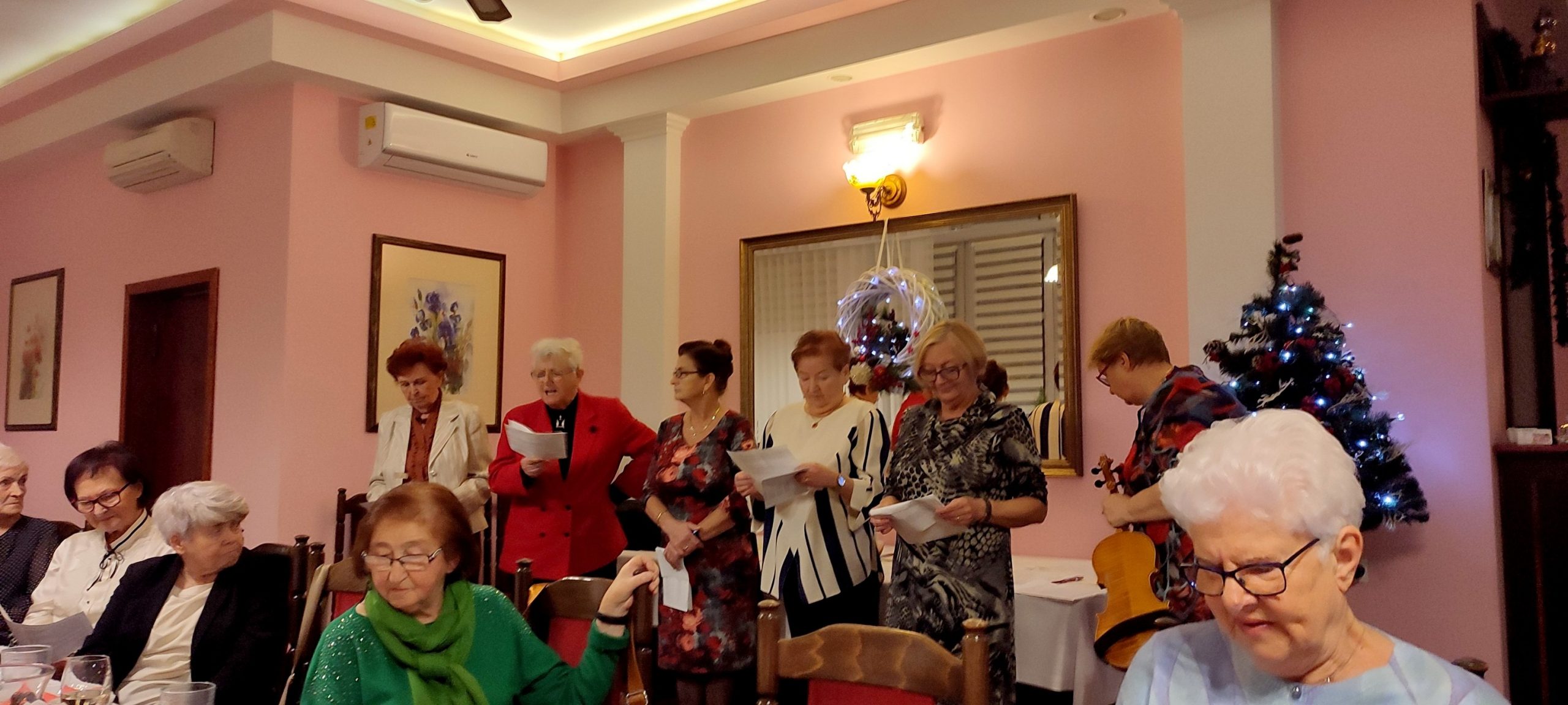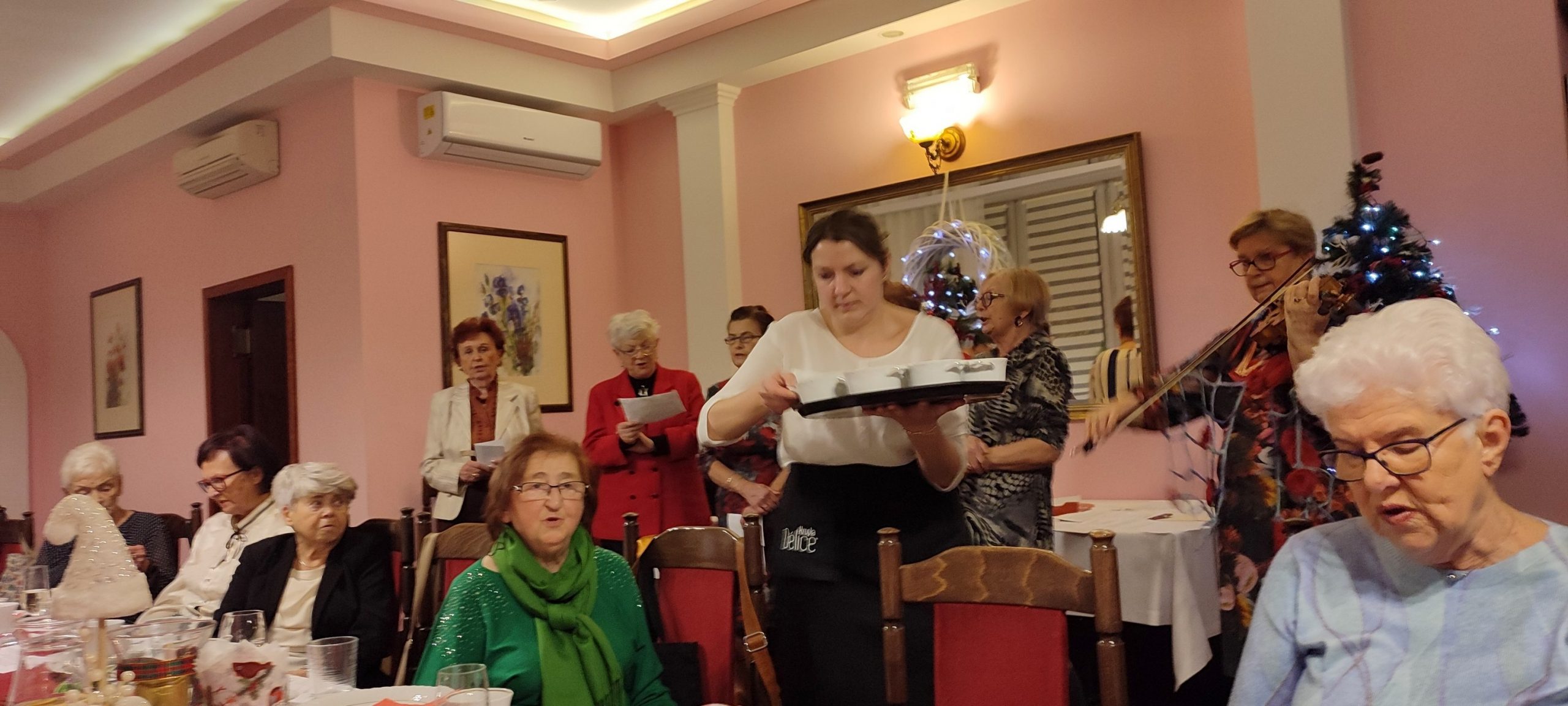 Jest taki wyjątkowy wieczór, na który każdy z nas czeka – to wieczór wigilijny, gdy wszyscy gromadzimy się rodzinnie przy wspólnym stole, by dzielić się białym opłatkiem i składać sobie życzenia. Sekcja Emerytów ZNP stanowi naszą sentymentalną związkową rodzinę, więc w dniu 13 grudnia br., dla chętnych członków Sekcji, odbyło się spotkanie wigilijne w Restauracji „Magnolia” w Rybniku. Wspólnie zaśpiewana kolęda „Jest taki dzień…”, z akompaniamentem skrzypiec, stworzyła prawdziwie świąteczny nastrój. Niestety, kilka osób zapisanych na „wigilijkę” nie mogło przybyć z powodu ponownego zachorowania na „Covid”. Z tego też powodu, po powitaniu zebranych i złożeniu życzeń przez przewodniczącą Sekcji, na jej prośbę, tym razem nie było wzajemnego łamania się opłatkiem, ani bezpośrednich gestów życzliwości i czułości. Każdy miał swój opłatek wraz z życzeniami świątecznymi w kopercie – dzieliliśmy się tylko dobrym słowem trzymając w ręku opłatek. Symboliczny toast lampką wina był zwieńczeniem naszych życzeń. Magiczna moc tego wieczoru zawsze przynosi spokój, radość i pokój, bo gasną wszelkie spory, bo rodzinna atmosfera łączy nas jeszcze mocniej. Nasz zespół muzyczno-kabaretowy pod kier. kol. Julii Rzytki oraz naszej Maestry – kol. Renaty Mielimąki, przygotował wszystkim teksty do wspólnego kolędowania, a sam opowiedział w gwarze śląskiej o dawnej śląskiej Wigilii. Nie zabrakło również bożonarodzeniowej poezji. Przygotowane przez restaurację dania wigilijne: barszcz czerwony z uszkami, ryba smażona, kapusta z grzybami, ziemniaki oraz kawa i ciasto z serem i makiem, wszystkim bardzo smakowały, a wykonaną przez naszą kol. Janinę Nowakowską ciekawą dekorację talerza, każdy zabrał ze sobą do domu. Dziękuję kol. Joli Kornas, która pomagała mi w kontaktach z kierownictwem restauracji. Dziękuję wszystkim, którzy pomagali w przygotowaniu spotkania oraz tym którzy przybyli, by spędzić ten przedświąteczny wieczór razem z nami. To był czas pełen ciepła i wzajemnej życzliwości, czas niezapomnianych chwil z przyjaciółmi.