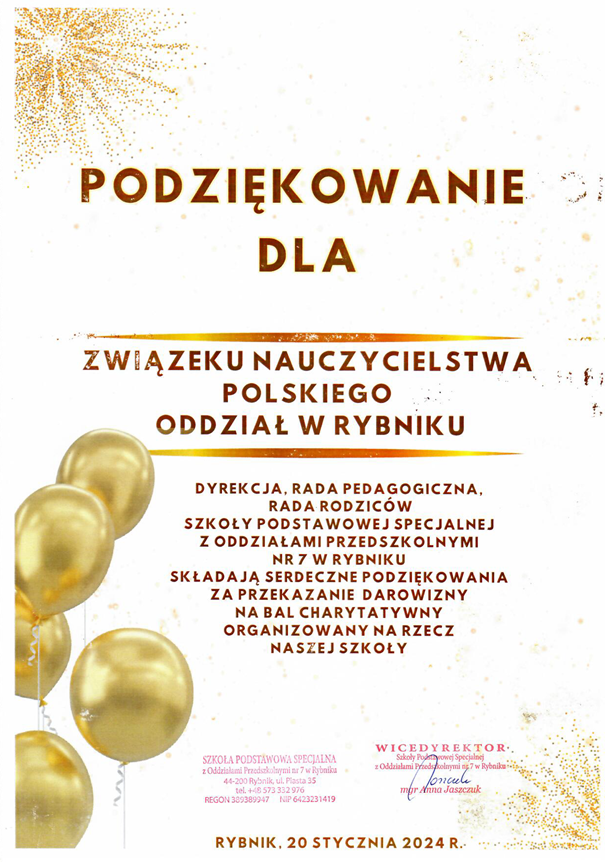 ZNP wspiera Bal Charytatywny Szkoły Podstawowej Specjalnej z Oddziałami Przedszkolnymi nr 7 w Rybniku