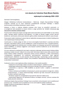 List otwarty do Członków Rady Miasta Rybnika wybranych na kadencję 2024 -2029