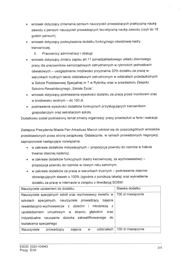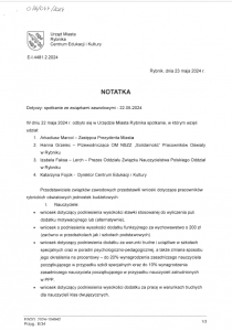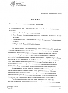 Notatka z uzgodnień pomiędzy związkami zawodowym a Urzędem Miasta Rybnika
