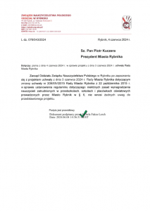 Opinia ZNP do projektu Uchwały R.M. Rybnika nr 209 z 3 czerwca 2024 r.