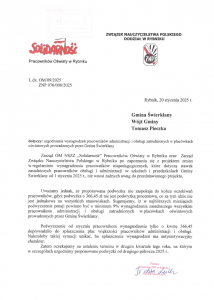 Pismo dotyczące uzgodnienia wynagrodzenia pracowników administracji i obsługi zatrudnionych w placówkach oświatowych prowadzonych przez Gminę Świerklany