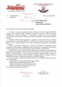 Pisma dotyczące projektu budżetu Miasta Rybnika oraz Gmin Świerklany i Jejkowice