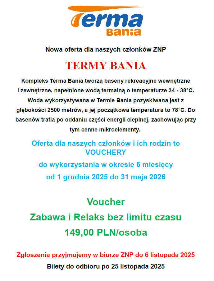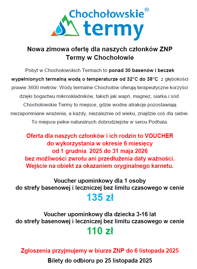 Poniżej przedstawiamy najnowszą ofertę dla Członków ZNP i dla ich rodzin.