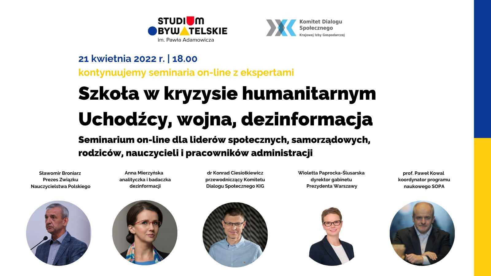 Wydarzenie online: Szkoła w kryzysie humanitarnym. Uchodźcy, wojna, dezinformacja | seminarium on-line z ekspertami