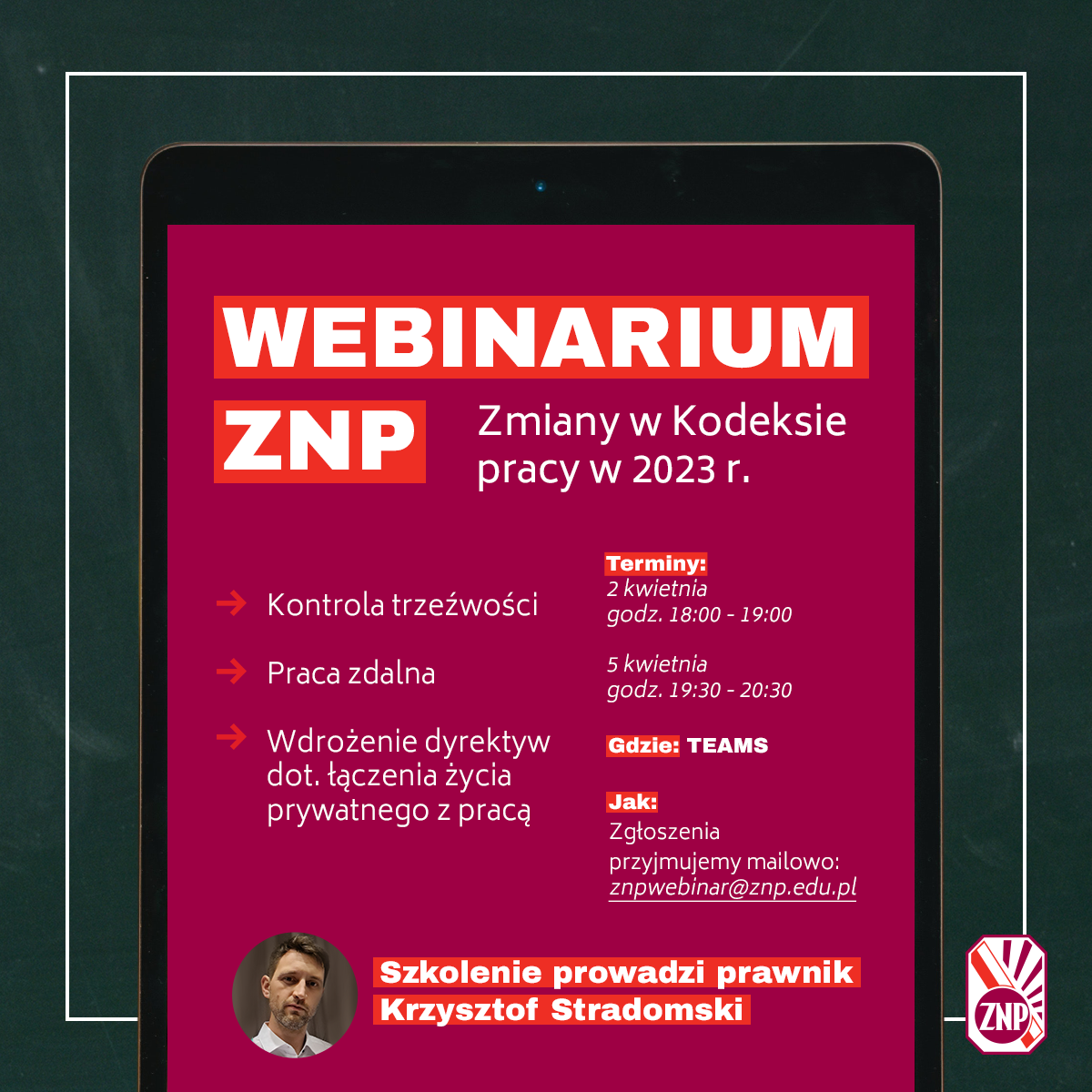 Zapraszamy na Webinarium ZNP poświęcone najnowszym zmianom w Kodeksie pracy!
