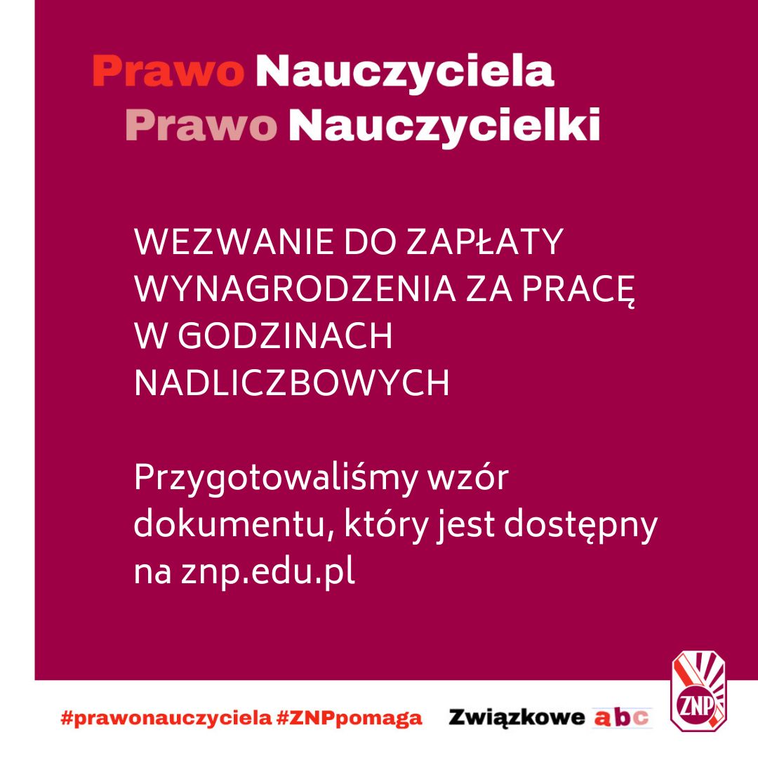 W celu uzyskania wynagrodzenia wystosuj do dyrektora zatrudniającej Cię szkoły wezwanie według wzoru ZNP (załącznik TUTAJ).