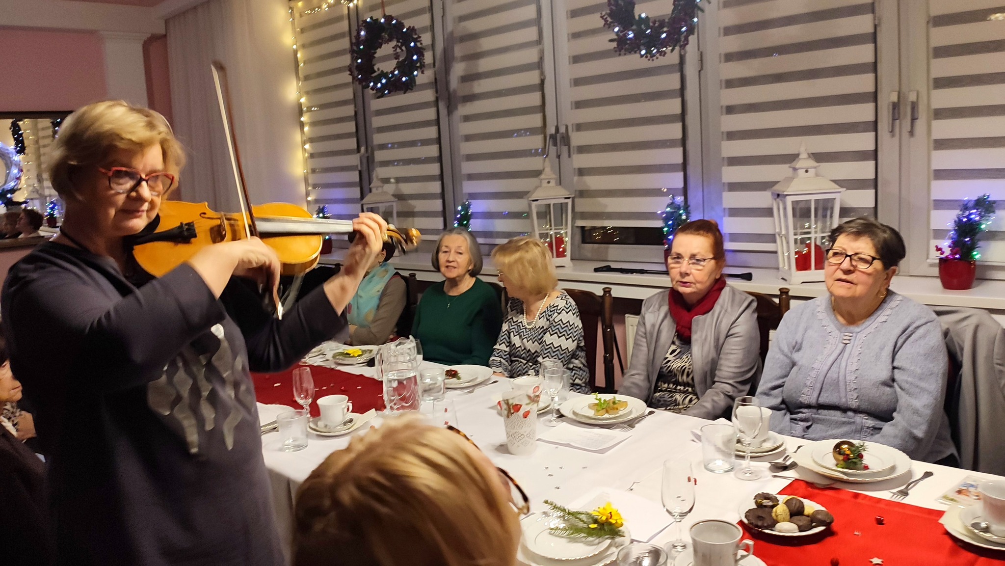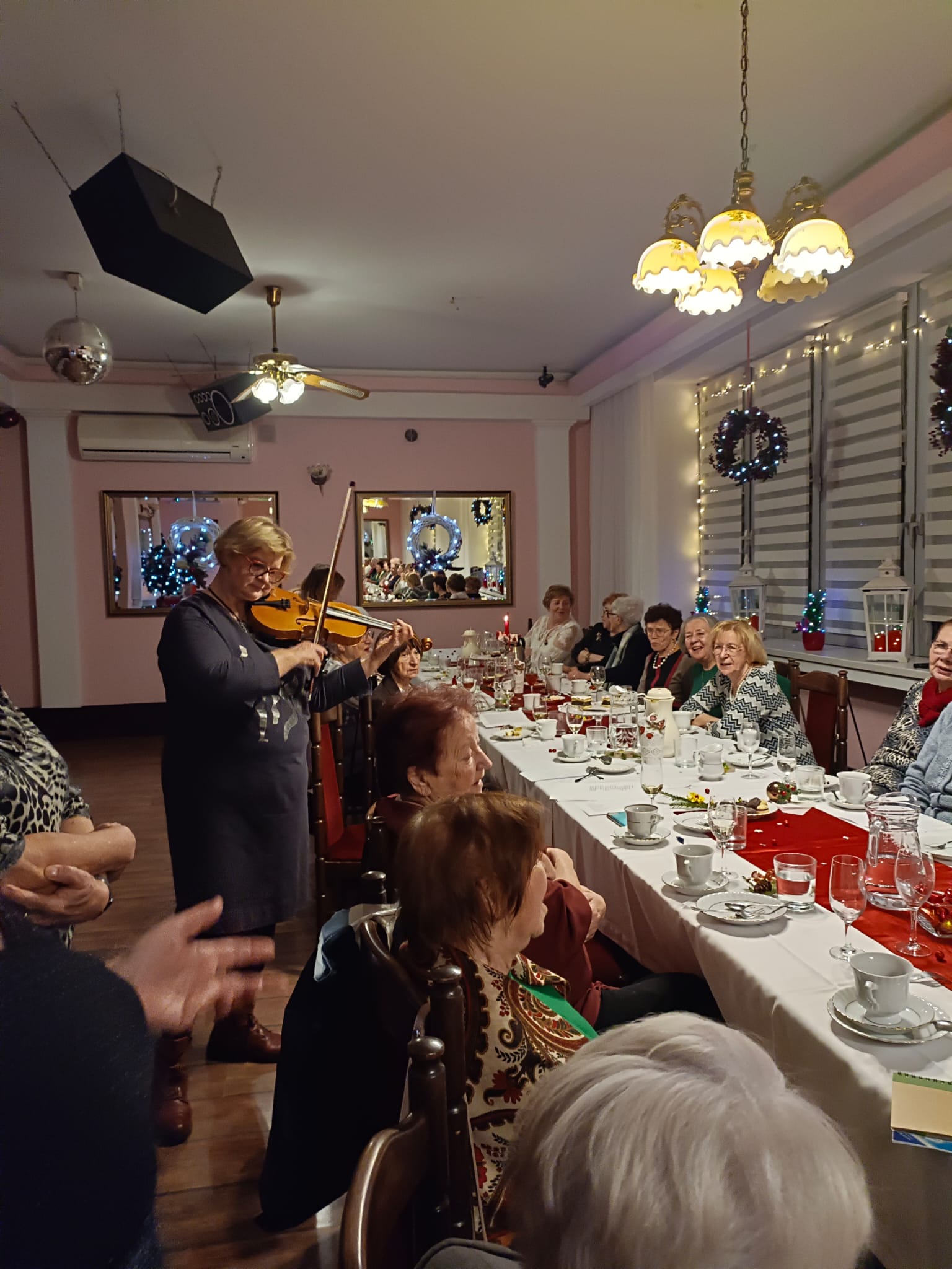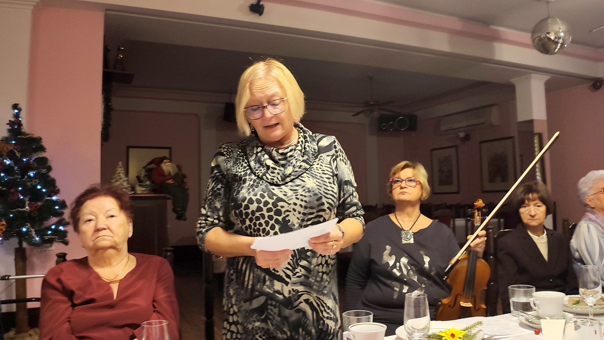 W ten szczególny przedświąteczny czas, nasza związkowa rodzina SEiR spotkała się na tradycyjnej wigilii. Wszystkich obecnych powitała Przewodnicząca Sekcji Emerytów ZNP w Rybniku i zaprosiła do wspólnego świętowania, bo wigilia to czas szczególny – pełen radości, ciepłych uczuć, ale i czas wspomnień, które przenoszą nas do domu rodzinnego, czasów dzieciństwa i młodości. To czas refleksji nad upływającym czasem i wspomnień o tych, którzy kiedyś byli z nami, a teraz ich zabrakło. Magia wigilijnego wieczoru tkwi w prostych gestach – uśmiechu, dobrym słowie, ciepłym spojrzeniu, a łamany biały opłatek symbolizuje miłość i przebaczenie. Wzajemnych życzeń, serdeczności i wzruszeń było wiele. Radosne śpiewanie kolęd i pastorałek z akompaniamentem skrzypiec naszej „Maestry” Reni Mielimąki, przeplatane poezją bożonarodzeniową i opowieściami o zwyczajach wigilijnych w domach polskich artystów, poetów, Wielkich Polaków pozwalały zanurzyć się w świątecznej atmosferze i mile spędzić czas.