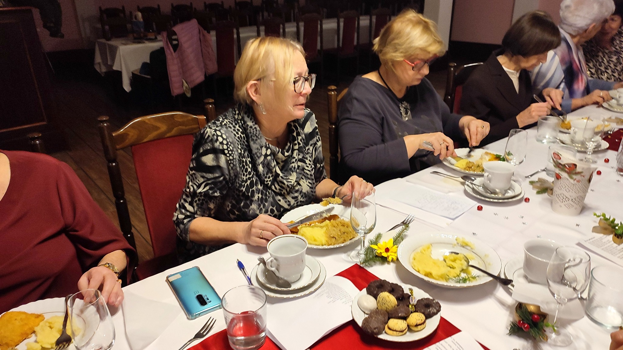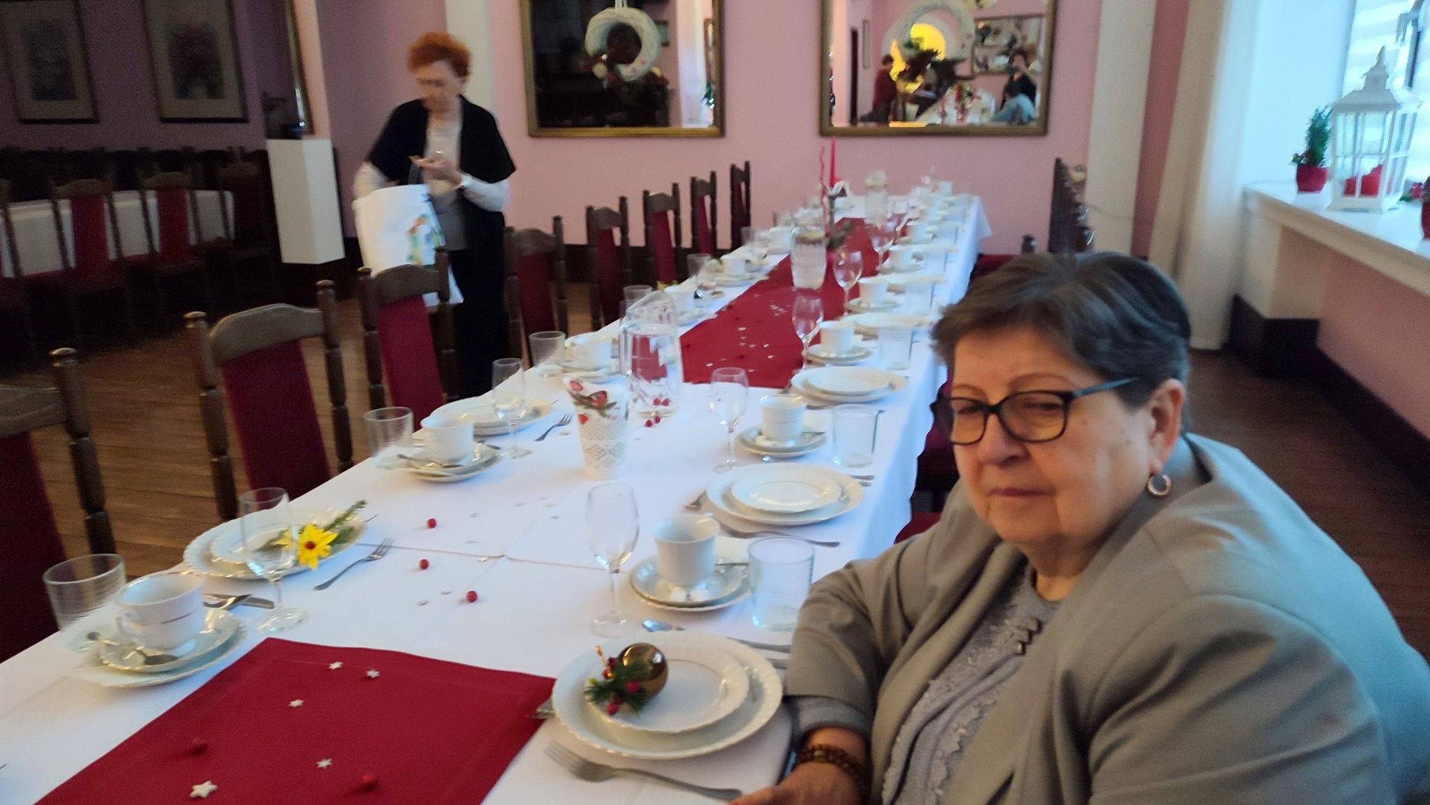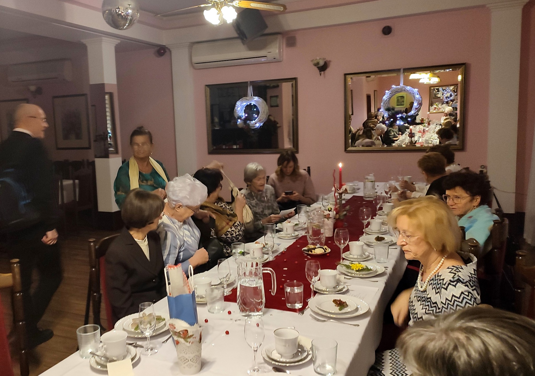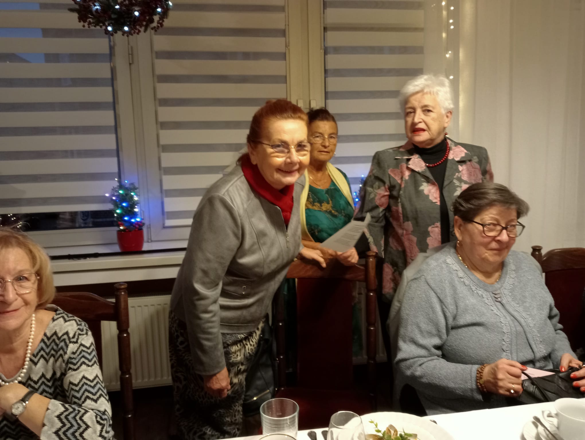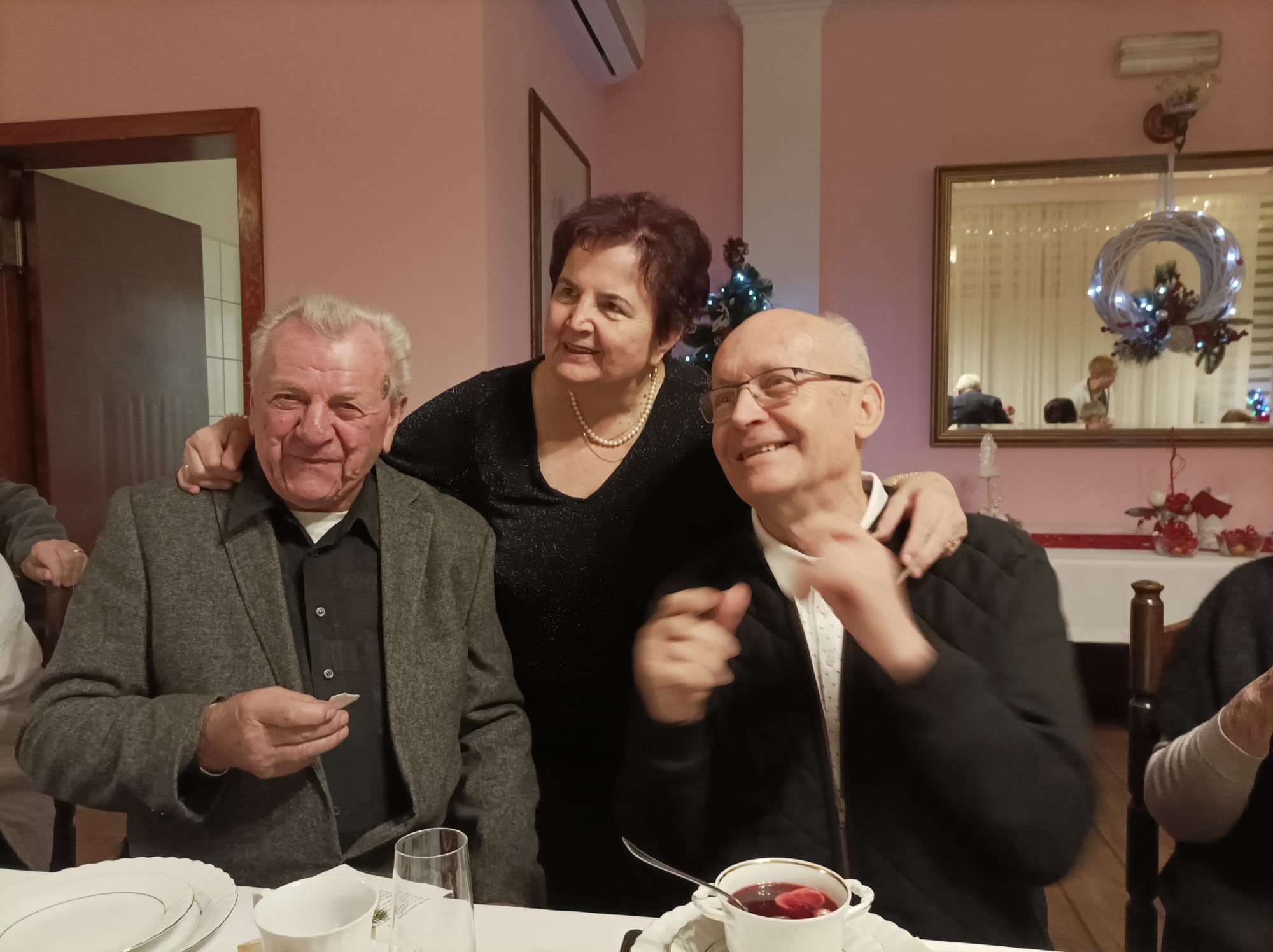 Kochani, bardzo ceniliśmy sobie obecność wśród nas radosnej 92 letniej kol. Notburgi P., która zapewniała, że za rok też będzie z nami. Była też okazja, by świętować w tym dniu Urodziny i wznieść toast za zdrowie naszej 85-letniej koleżanki Lusi K., a radośnie zaśpiewane dla niej „Sto lat!” rozlegało się po całej restauracji. Zamówione tradycyjne dania wigilijne były bardzo smaczne i pełnopłatne przez każdego z uczestników, bez dofinansowania z ZNP. Szkoda, że to była nasza ostatnia wigilia w tym lokalu, ponieważ od stycznia lokal kończy działalność. Mile będziemy wspominać życzliwość Szefowej i personelu.