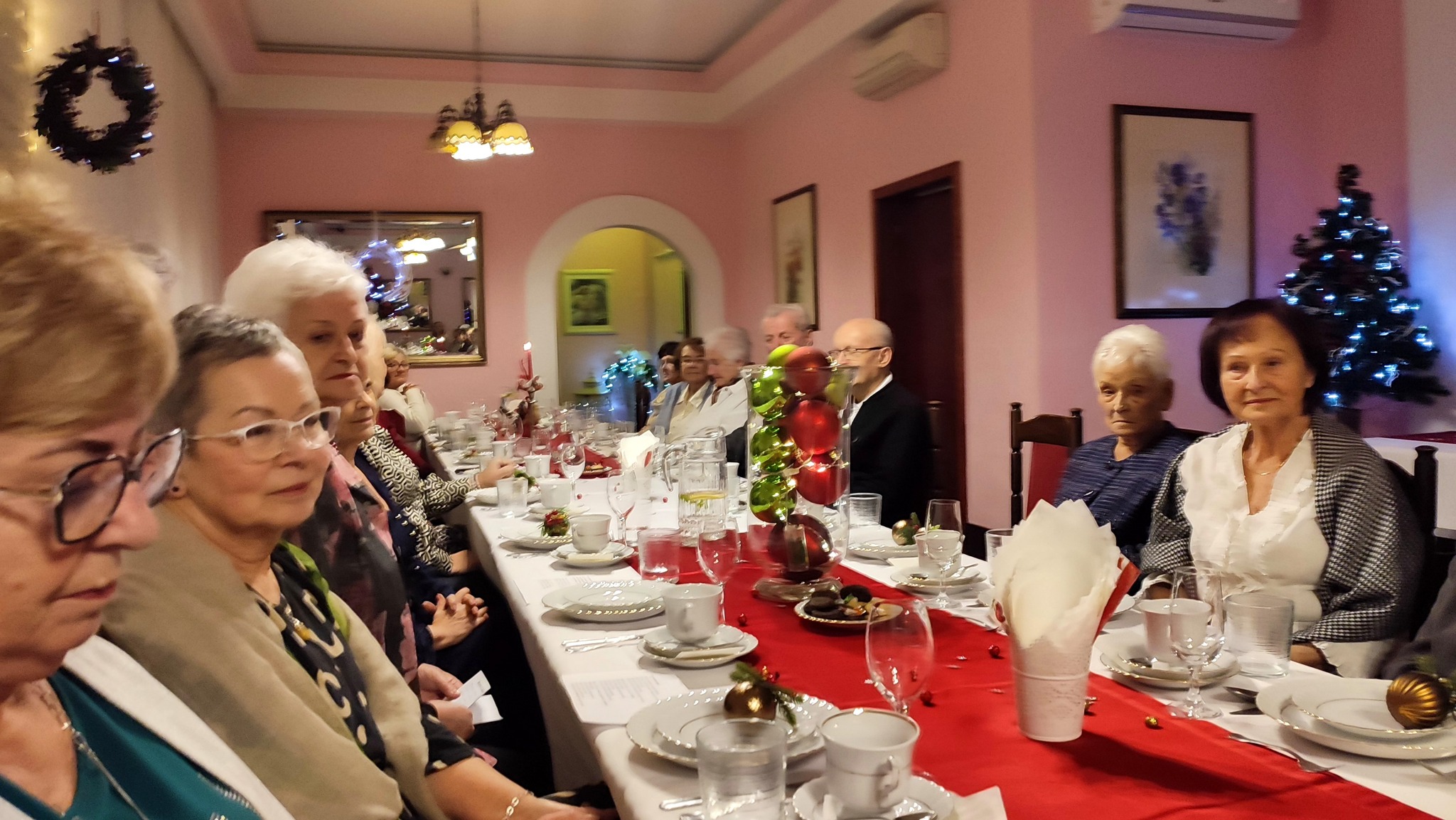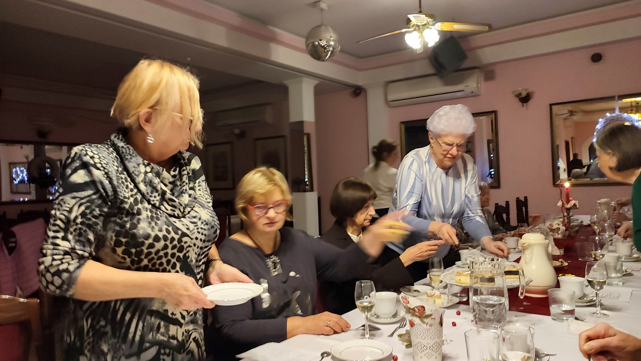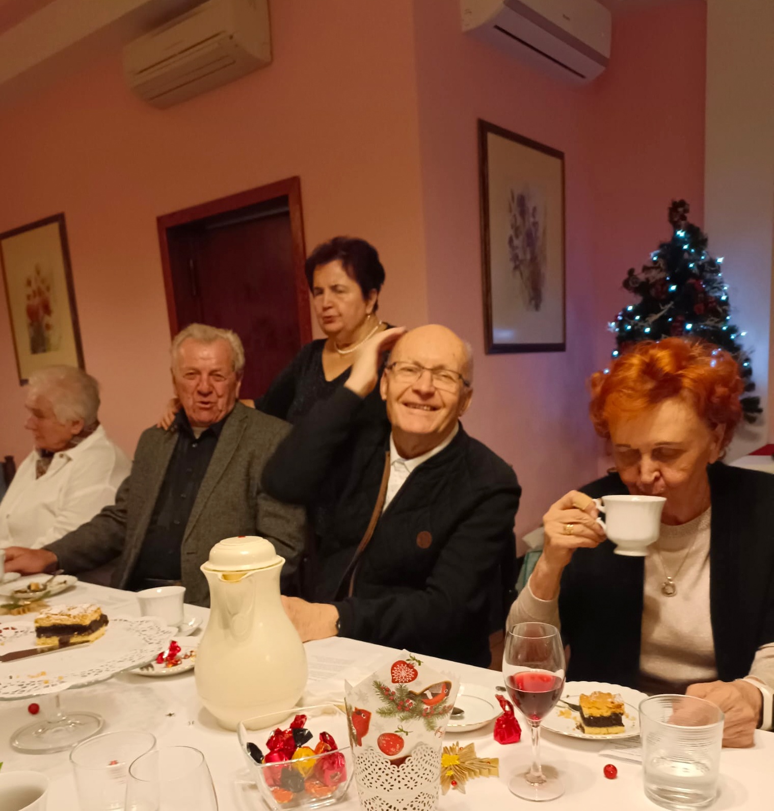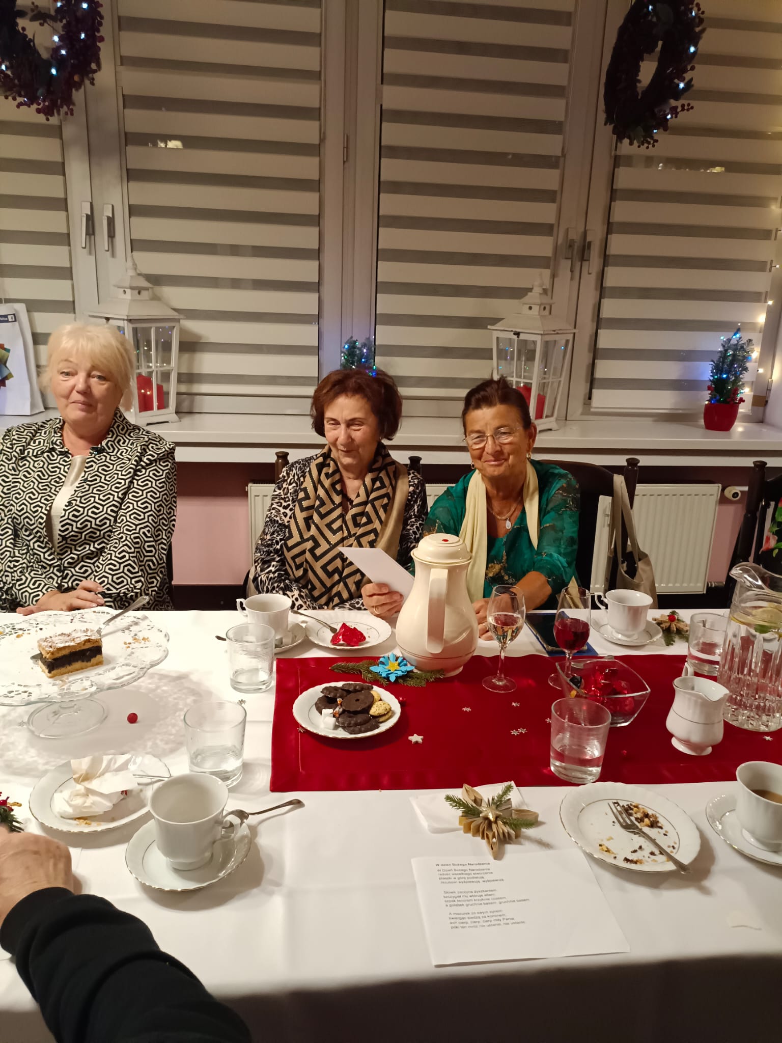 Kochani, bardzo ceniliśmy sobie obecność wśród nas radosnej 92 letniej kol. Notburgi P., która zapewniała, że za rok też będzie z nami. Była też okazja, by świętować w tym dniu Urodziny i wznieść toast za zdrowie naszej 85-letniej koleżanki Lusi K., a radośnie zaśpiewane dla niej „Sto lat!” rozlegało się po całej restauracji. Zamówione tradycyjne dania wigilijne były bardzo smaczne i pełnopłatne przez każdego z uczestników, bez dofinansowania z ZNP. Szkoda, że to była nasza ostatnia wigilia w tym lokalu, ponieważ od stycznia lokal kończy działalność. Mile będziemy wspominać życzliwość Szefowej i personelu.