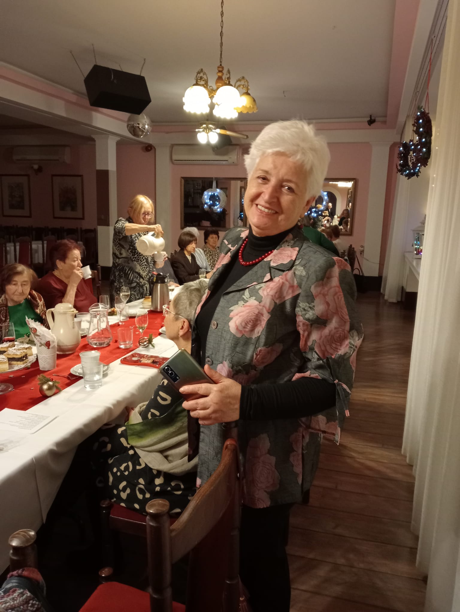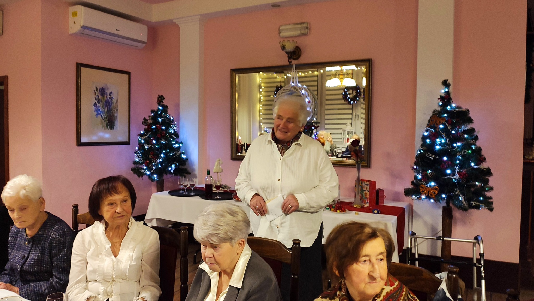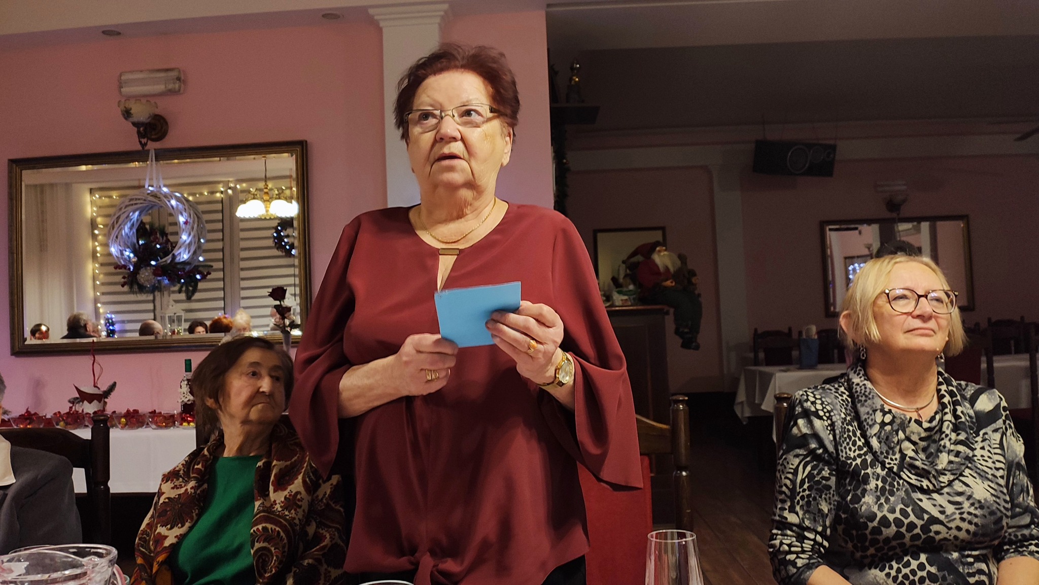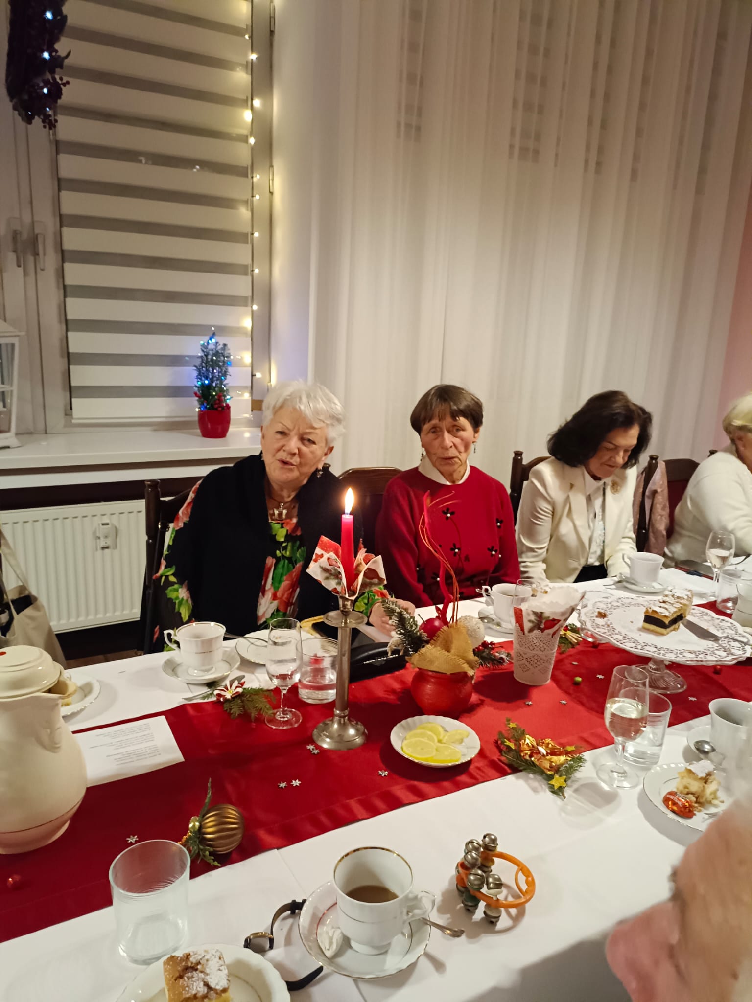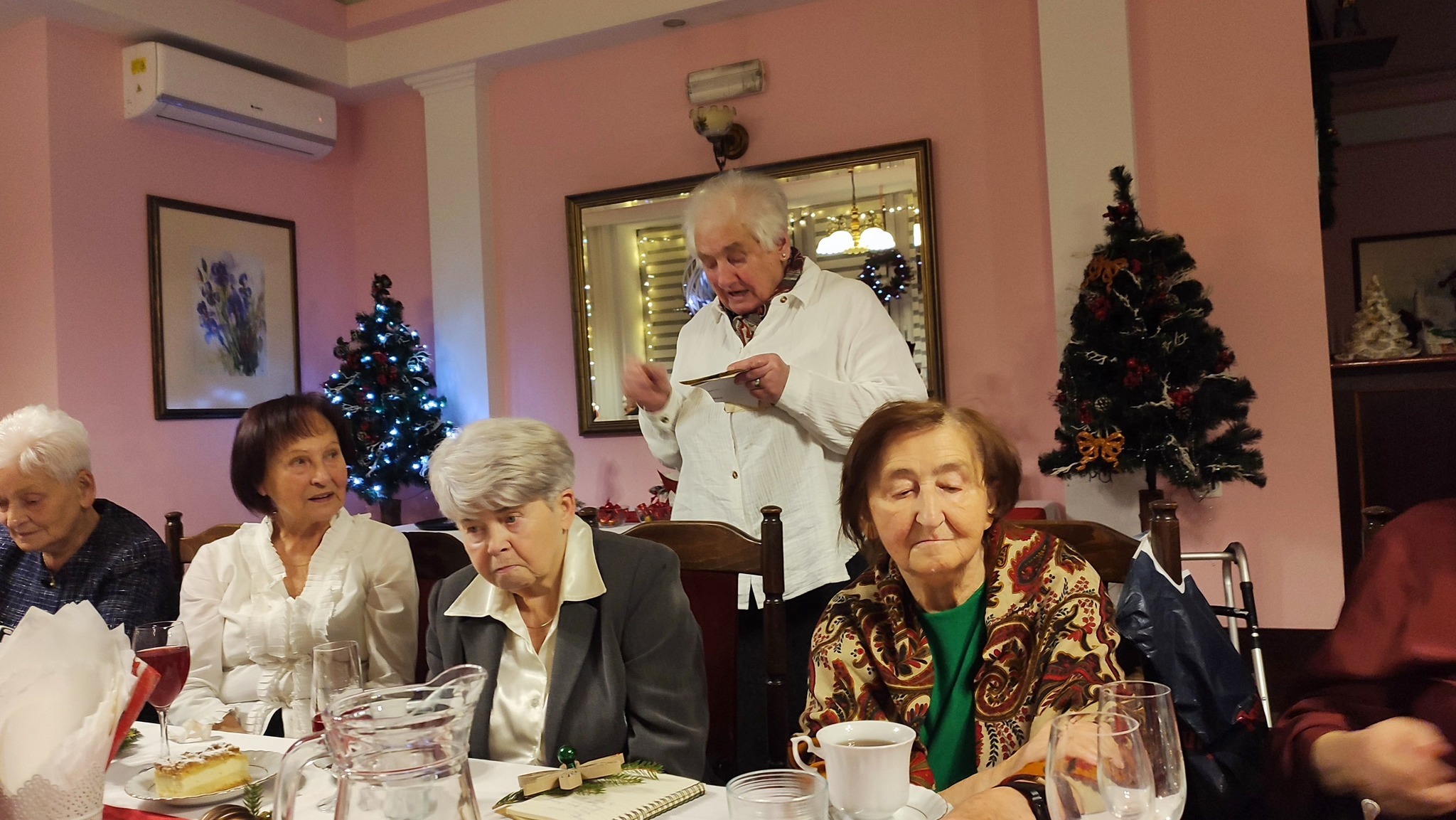 Kochani, bardzo ceniliśmy sobie obecność wśród nas radosnej 92 letniej kol. Notburgi P., która zapewniała, że za rok też będzie z nami. Była też okazja, by świętować w tym dniu Urodziny i wznieść toast za zdrowie naszej 85-letniej koleżanki Lusi K., a radośnie zaśpiewane dla niej „Sto lat!” rozlegało się po całej restauracji. Zamówione tradycyjne dania wigilijne były bardzo smaczne i pełnopłatne przez każdego z uczestników, bez dofinansowania z ZNP. Szkoda, że to była nasza ostatnia wigilia w tym lokalu, ponieważ od stycznia lokal kończy działalność. Mile będziemy wspominać życzliwość Szefowej i personelu.