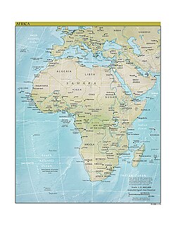 Afryka – drugi pod względem wielkości kontynent na Ziemi[2]. Zajmuje 30,37 mln km², czyli ponad 20,3% ogólnej powierzchni lądowej Ziemi. Przechodzą przez nią: południk 0°, obydwa zwrotniki i równik.