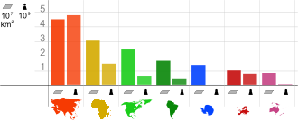 | Antarktyda | 0,0% | 6,4% | 0,2% | 5,2% | 28,7% | 56,9% | 2,5% | 0,1% |
