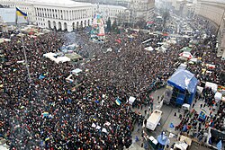 [edytuj | edytuj kod]Z punktu widzenia władz Rosji Ukraina postrzegana jest geostrategicznie jako bufor oddzielający ją od Organizacji Traktatu Północnoatlantyckiego (NATO). Również potencjał demograficzny i gospodarczy Ukrainy sprawia, że Rosja wielokrotnie podejmowała próby włączenia jej do kontrolowanych przez siebie eurazjatyckich struktur integracyjnych[9]. Natomiast ewentualny sukces demokratycznej transformacji Ukrainy, poprzez przyjmowanie przez nią standardów europejskich i integrację polityczno-gospodarczą ze strukturami zachodnimi, według Rosji stanowi zagrożenie zarówno dla bezpieczeństwa Federacji Rosyjskiej, jak i dla stabilności rządzącego nią autorytarnego reżimu[9].