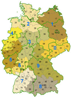 W Niemczech kod pocztowy składa się z 5 cyfr. Pierwsza cyfra oznacza okręg pocztowy.
