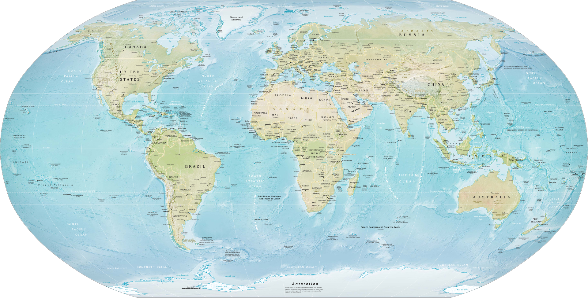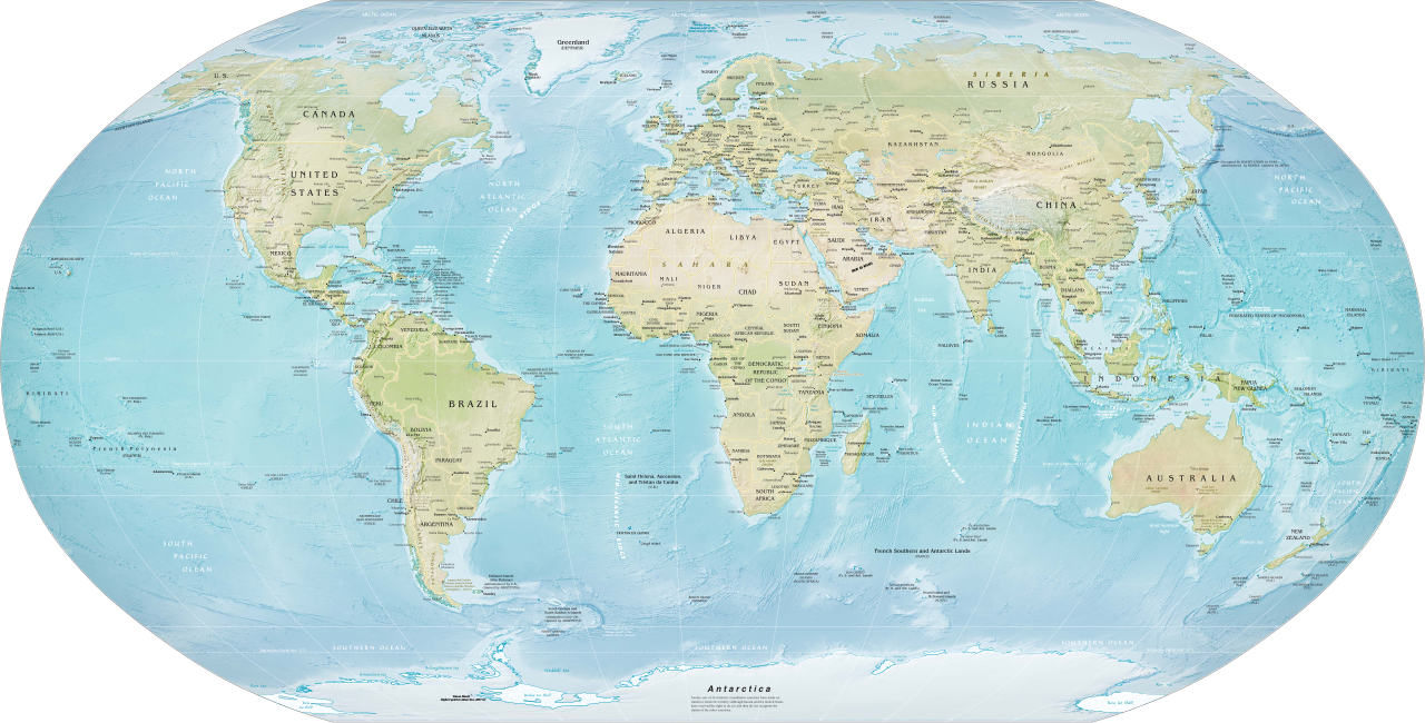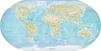 hindi fidżyjskie A global map of the world in the Robinson projection, with no legend.