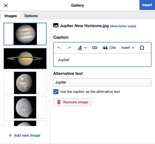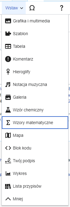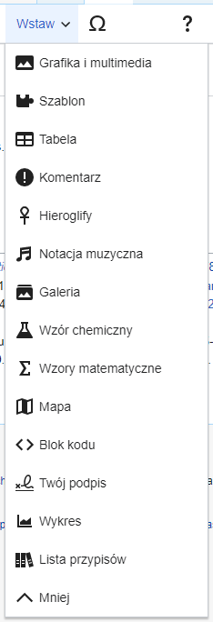 Wstaw: menu „Wstaw” może się różnić na różnych wiki. Poniżej zamieszczamy listę wszystkich możliwych opcji.