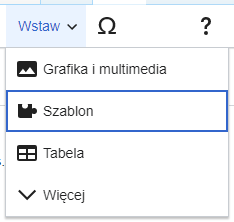 | Aby dodać nowy szablon, umieść kursor w miejscu, w którym chcesz go dodać i kliknij na ikonę „Szablon” (obrazek puzzla) umieszczoną w menu „Wstaw”. | ![]() |