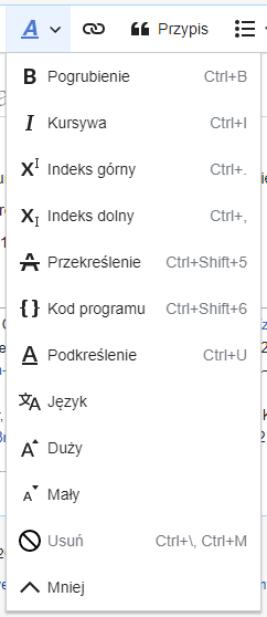 Jeżeli nie zaznaczono żadnego tekstu, kliknięcie na „A” otworzy menu, a wybrane formatowanie będzie się odnosiło do tekstu, który będzie wpisany w miejscu, w którym znajduje się kursor. |