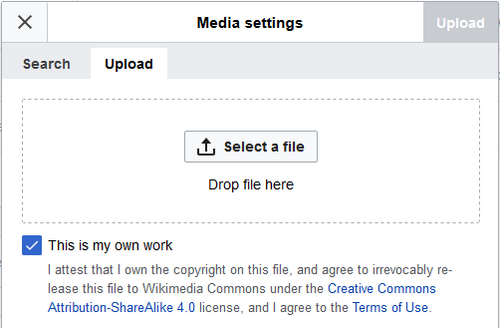 | Możesz przesyłać nowe pliki multimedialne, używając zakładki w menu edycji plików. Jednak lepiej jest przesyłać pliki na serwis Wikimedia Commons. Zapoznaj się też z ograniczeniami licencyjnymi na stronie Commons:Nadawanie licencji. | |
