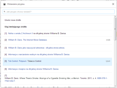 Używanie istniejącego przypisu | |