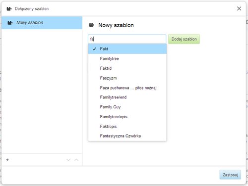| Zależnie od ustawień danej wiki lista dostępnych szablonów będzie inna.