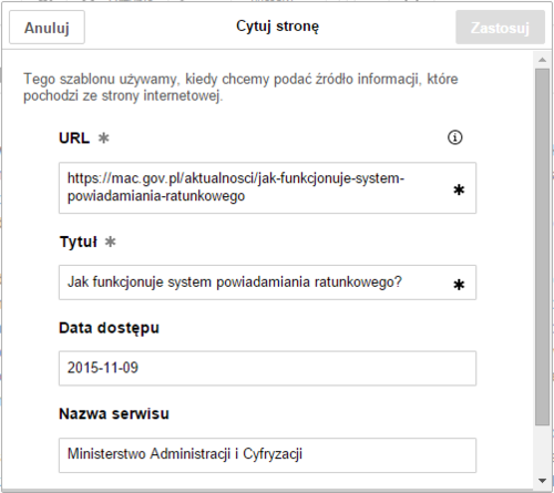 | Jeśli użyjesz szablonu z listy, na plwiki „Cytuj źródło (szablon)”, to zobaczysz od razu okno edycji szablonu.