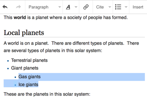 - Te informacje dotyczą edytora wizualnego. Zobacz analogiczne dotyczące wikikodu (Czym to się różni?)