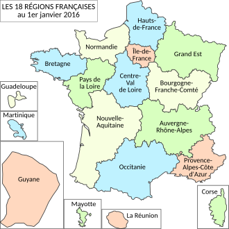 [edytuj | edytuj kod]Podział europejskiej części Francji obowiązujący od 1 stycznia 2016