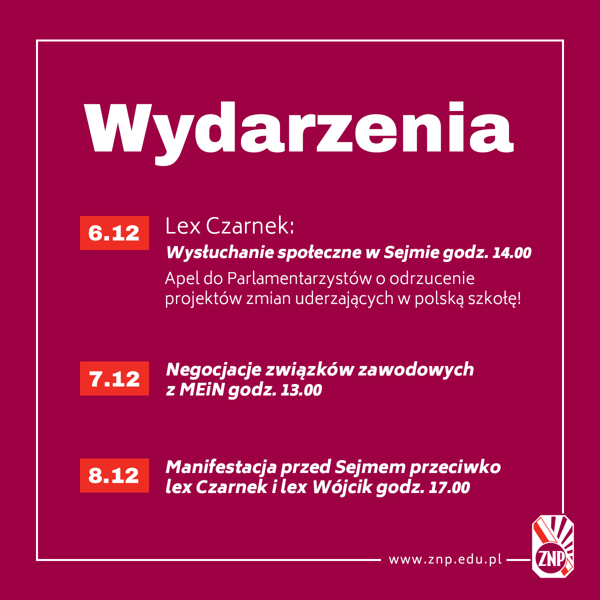 Jako przedstawicielki i przedstawiciele wspólnot lokalnych, samorządów miejskich oraz wiejskich, oświatowych związków zawodowych, kadry kierowniczej oświaty, nauczycieli i nauczycielek, organizacji społecznych, a także społeczności szkół publicznych i niepublicznych oraz jako rodzice i uczniowie stanowczo sprzeciwiamy się tym zmianom i apelujemy o zaniechanie prac nad całym pakietem zmian w edukacji pod hasłem „lex Czarnek”!