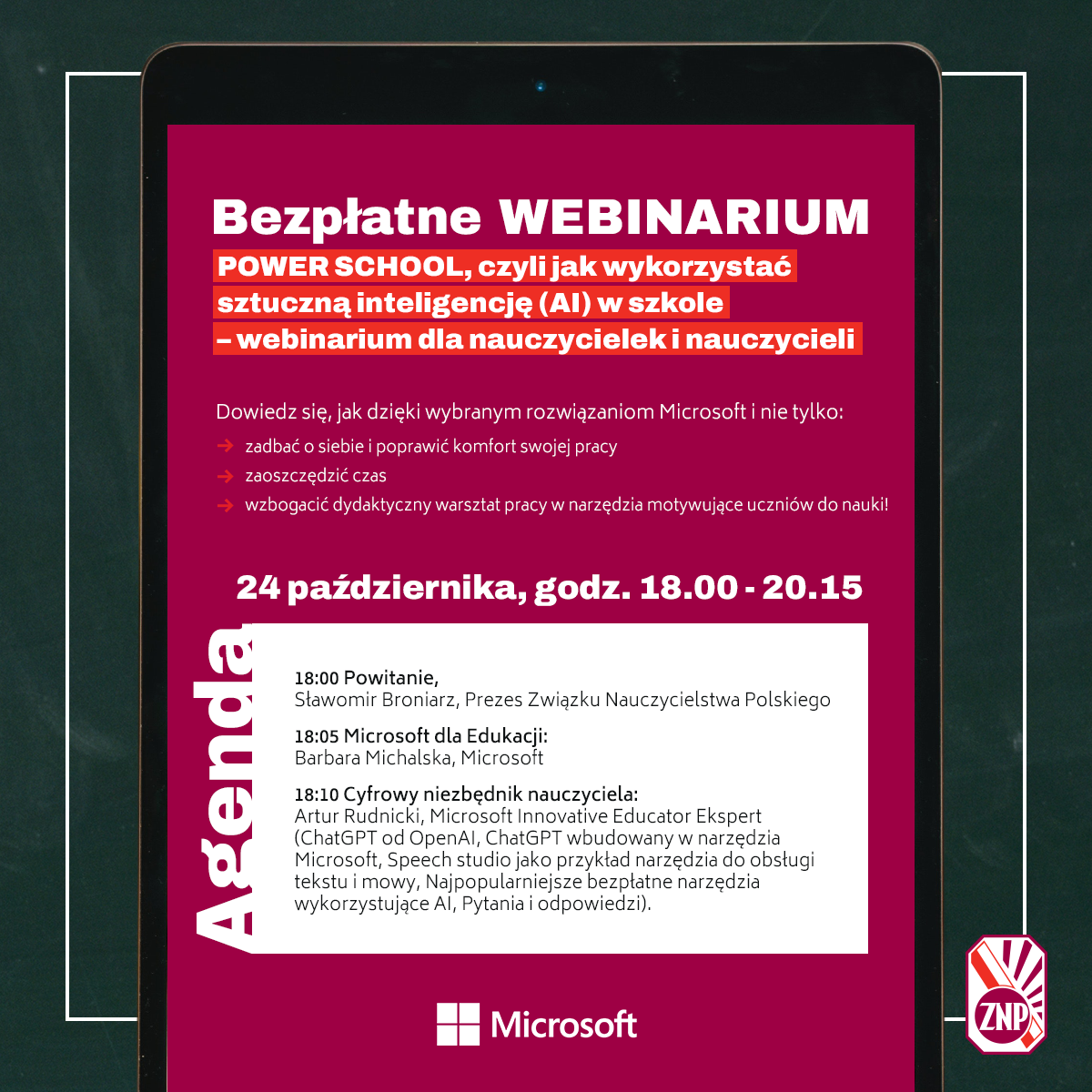 Zapraszamy na bezpłatne WEBINARIUM ZNP i Microsoft