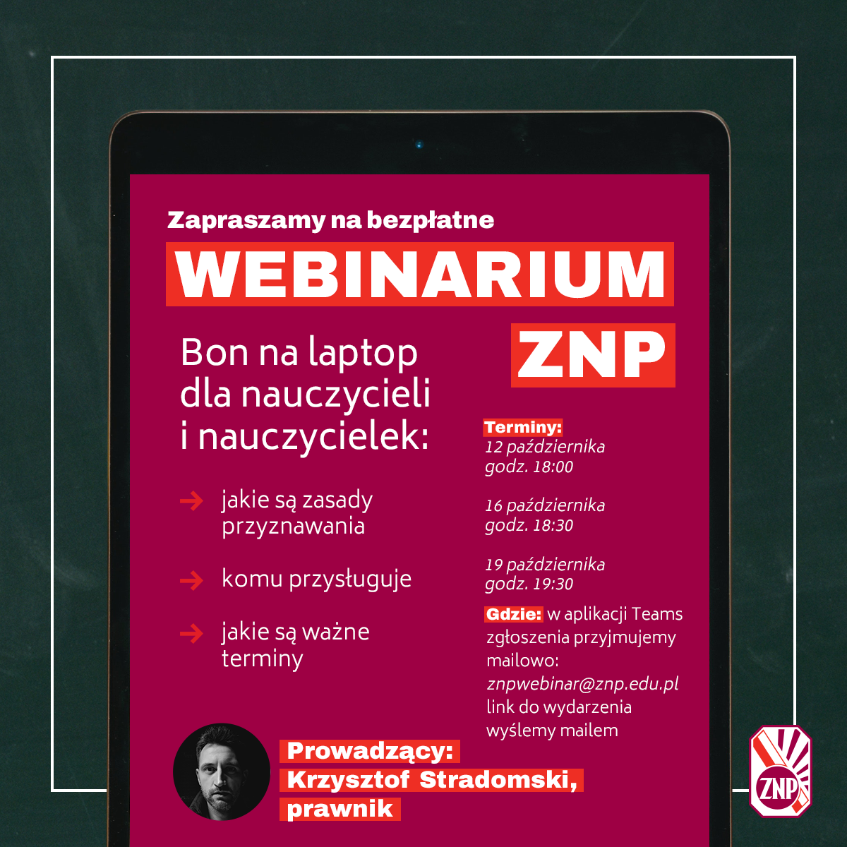 Zapraszamy na bezpłatne WEBINARIUM ZNP