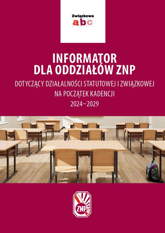 „Informator dla oddziałów ZNP dotyczący działalności statutowej i związkowej na początek kadencji 2024–2029″ jest skierowany przede wszystkim do osób, które po raz pierwszy pełnią funkcję w oddziałach ZNP. Informator ma pomagać w bieżącej pracy związkowej, dlatego dołączyliśmy do niego gotowe wzory dokumentów wewnątrz związkowych.